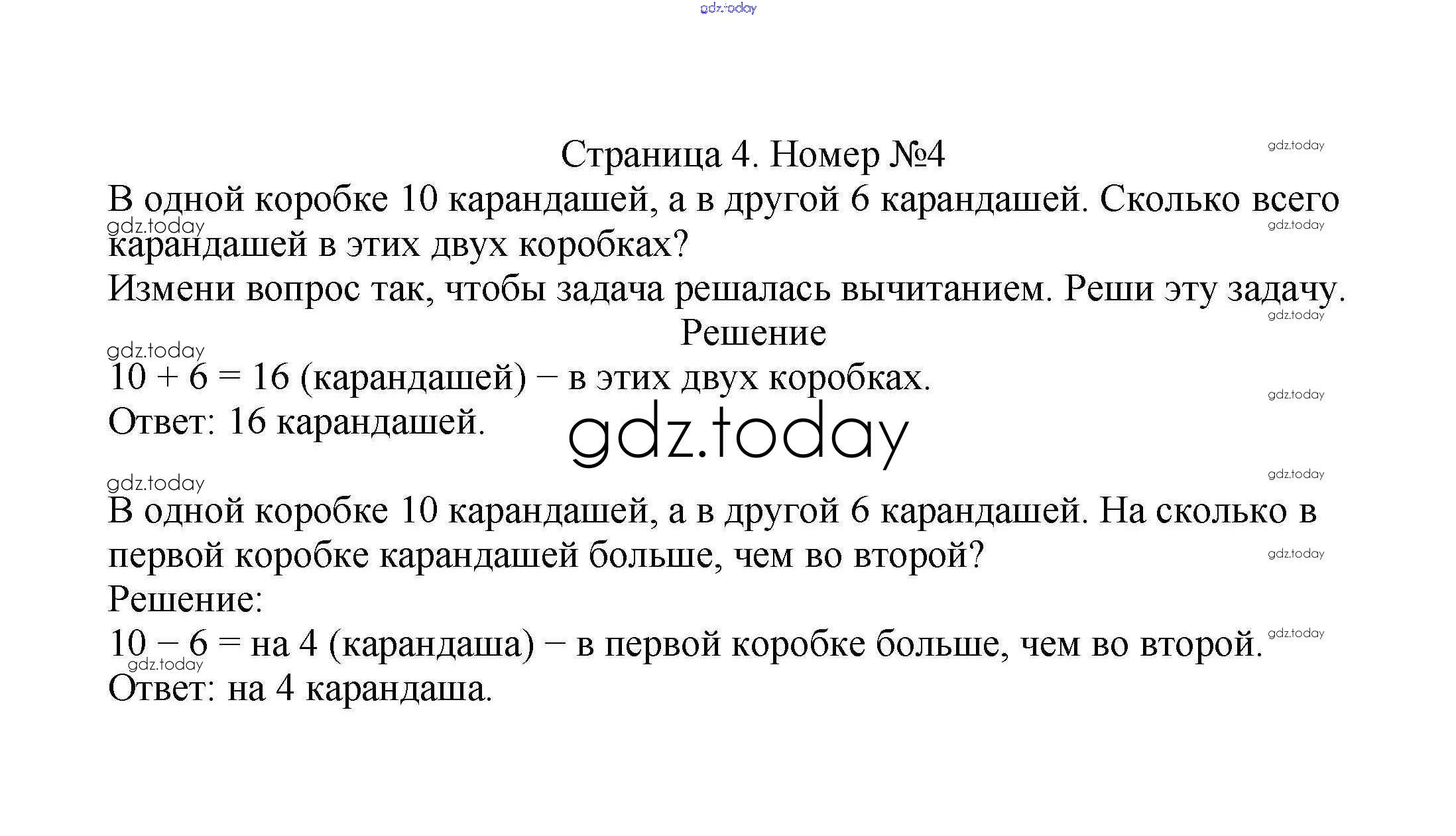 На страницах сайта gdz.today вы найдете учебный и вспомогательный материал, направленный на улучшения знаний школьной программы. ГДЗ - онлайн мир знаний Решение к части 1. Страницы 4 Учебнику по Математике для 2 класса Моро, Бантова Просвещение Школа России 2015