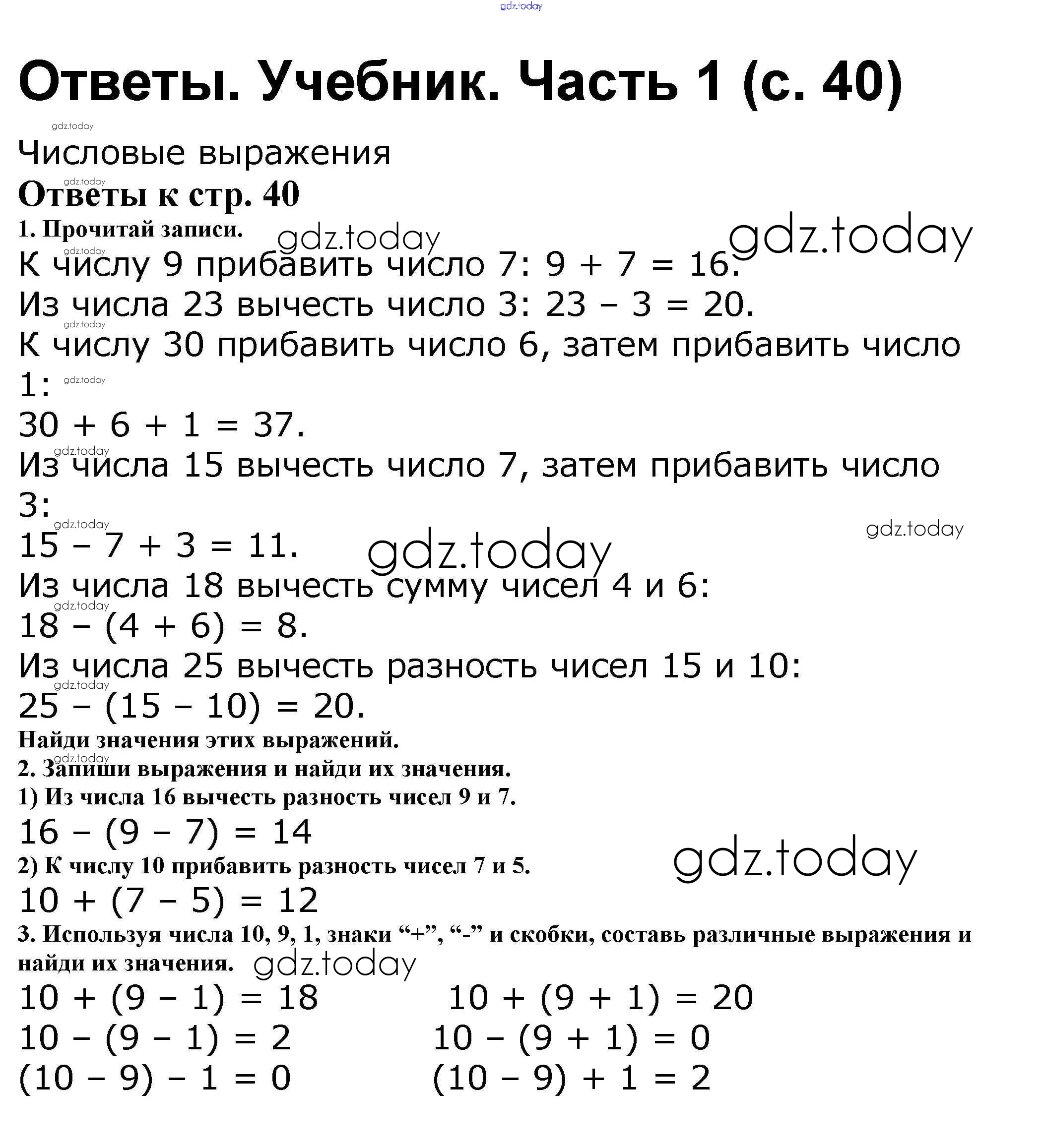 На страницах сайта gdz.today вы найдете учебный и вспомогательный материал, направленный на улучшения знаний школьной программы. ГДЗ - онлайн мир знаний Решение к части 1. Страницы 40 Учебнику по Математике для 2 класса Моро, Бантова Просвещение Школа России 2015