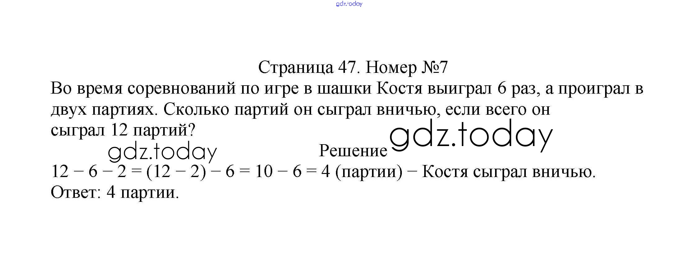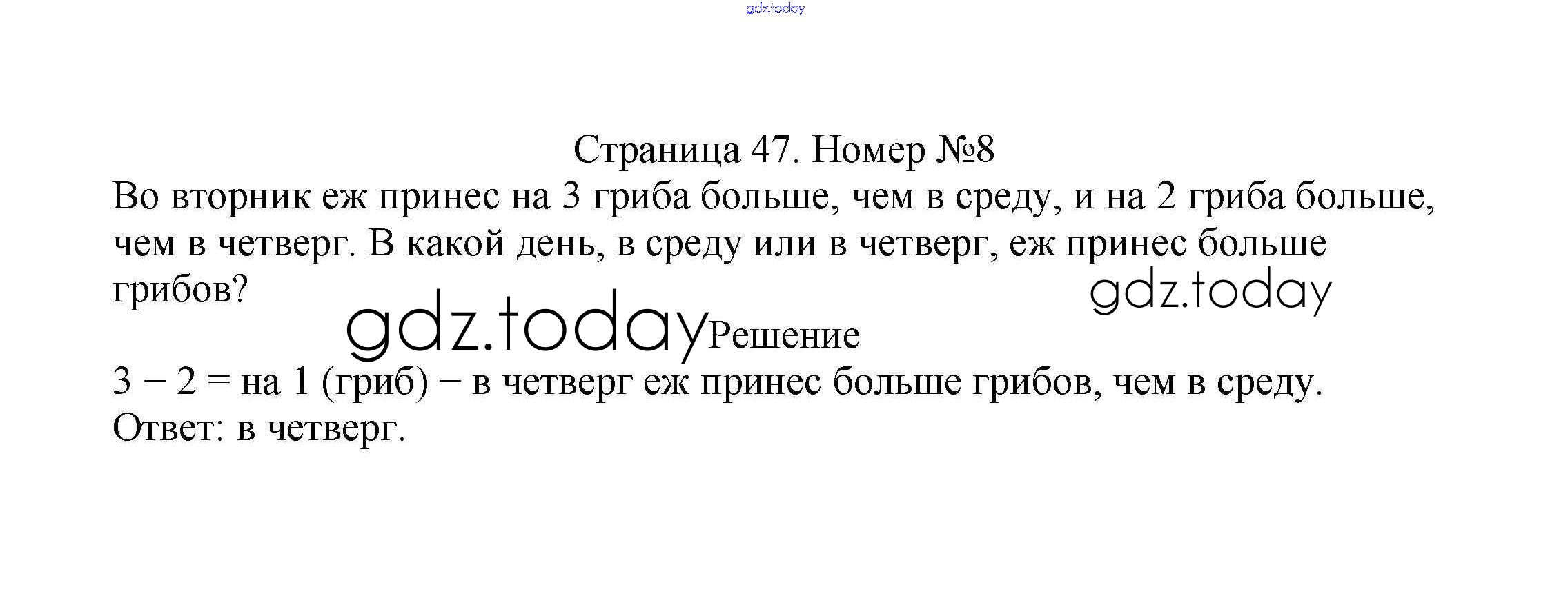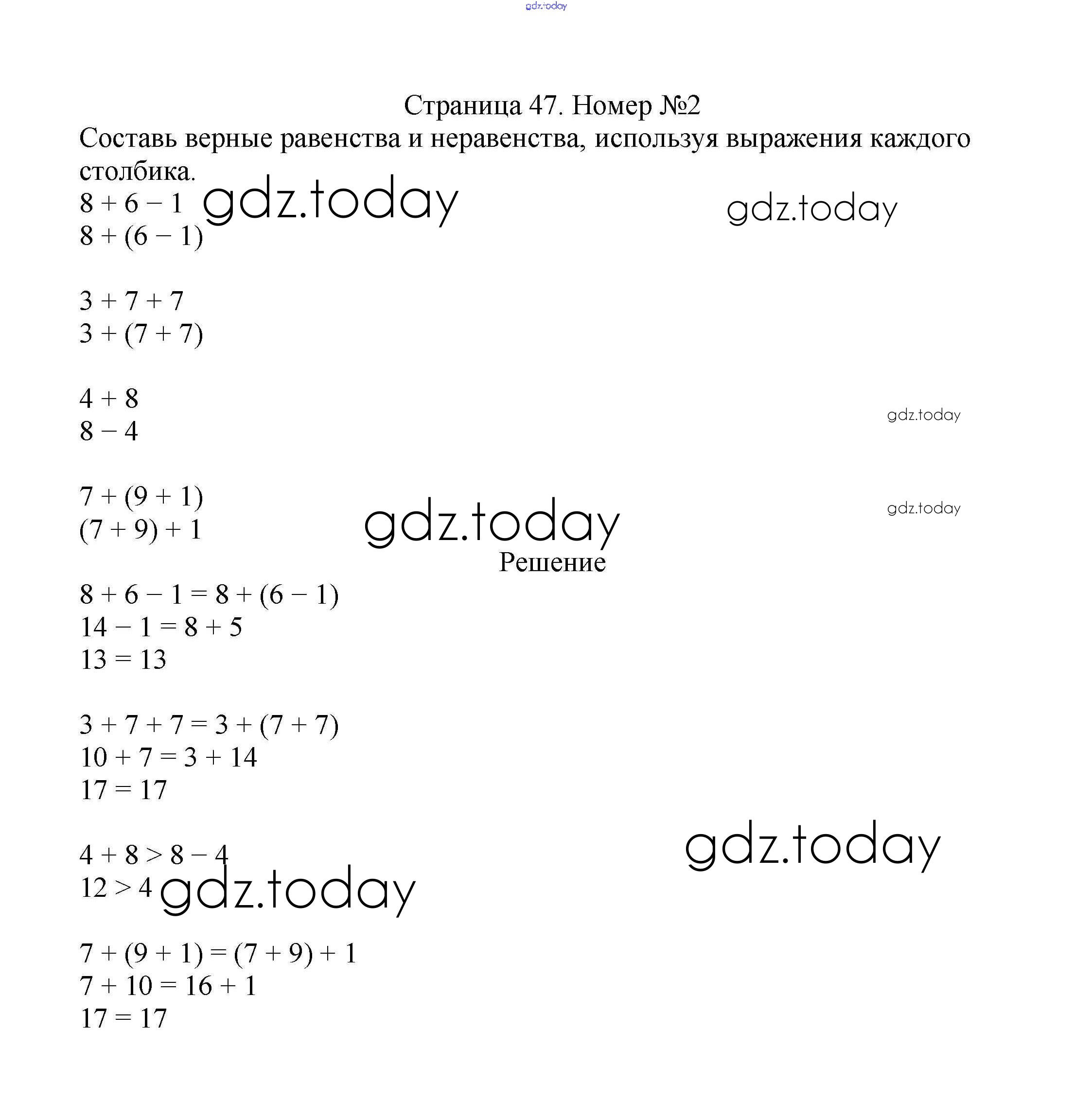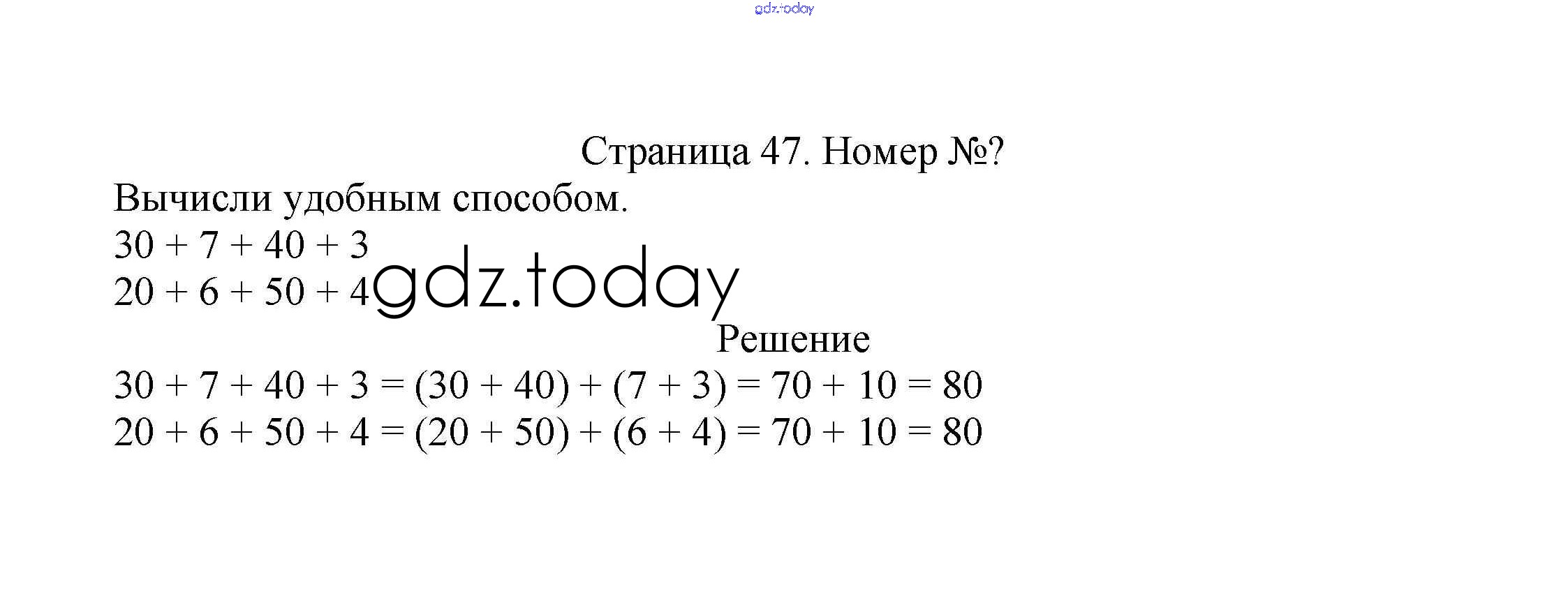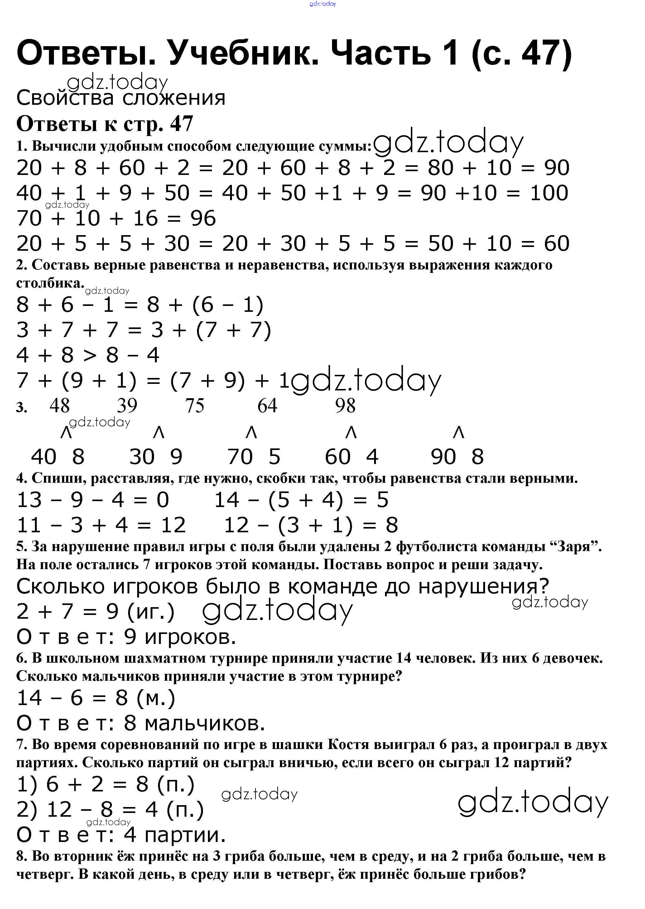 На страницах сайта gdz.today вы найдете учебный и вспомогательный материал, направленный на улучшения знаний школьной программы. ГДЗ - онлайн мир знаний Решение к части 1. Страницы 47 Учебнику по Математике для 2 класса Моро, Бантова Просвещение Школа России 2015