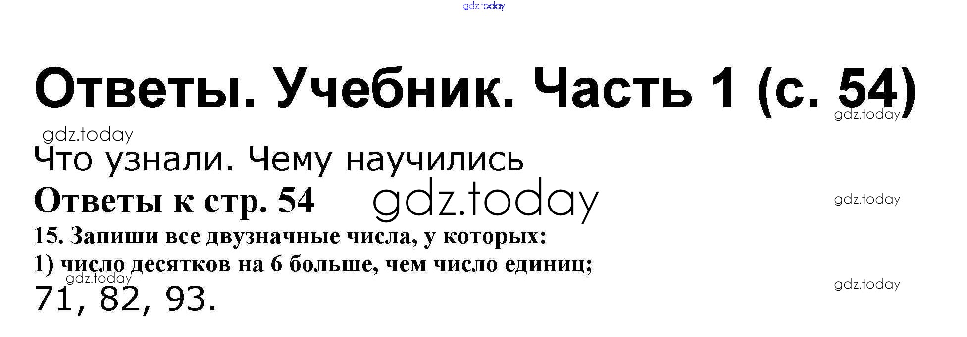 На страницах сайта gdz.today вы найдете учебный и вспомогательный материал, направленный на улучшения знаний школьной программы. ГДЗ - онлайн мир знаний Решение к части 1. Страницы 54 Учебнику по Математике для 2 класса Моро, Бантова Просвещение Школа России 2015