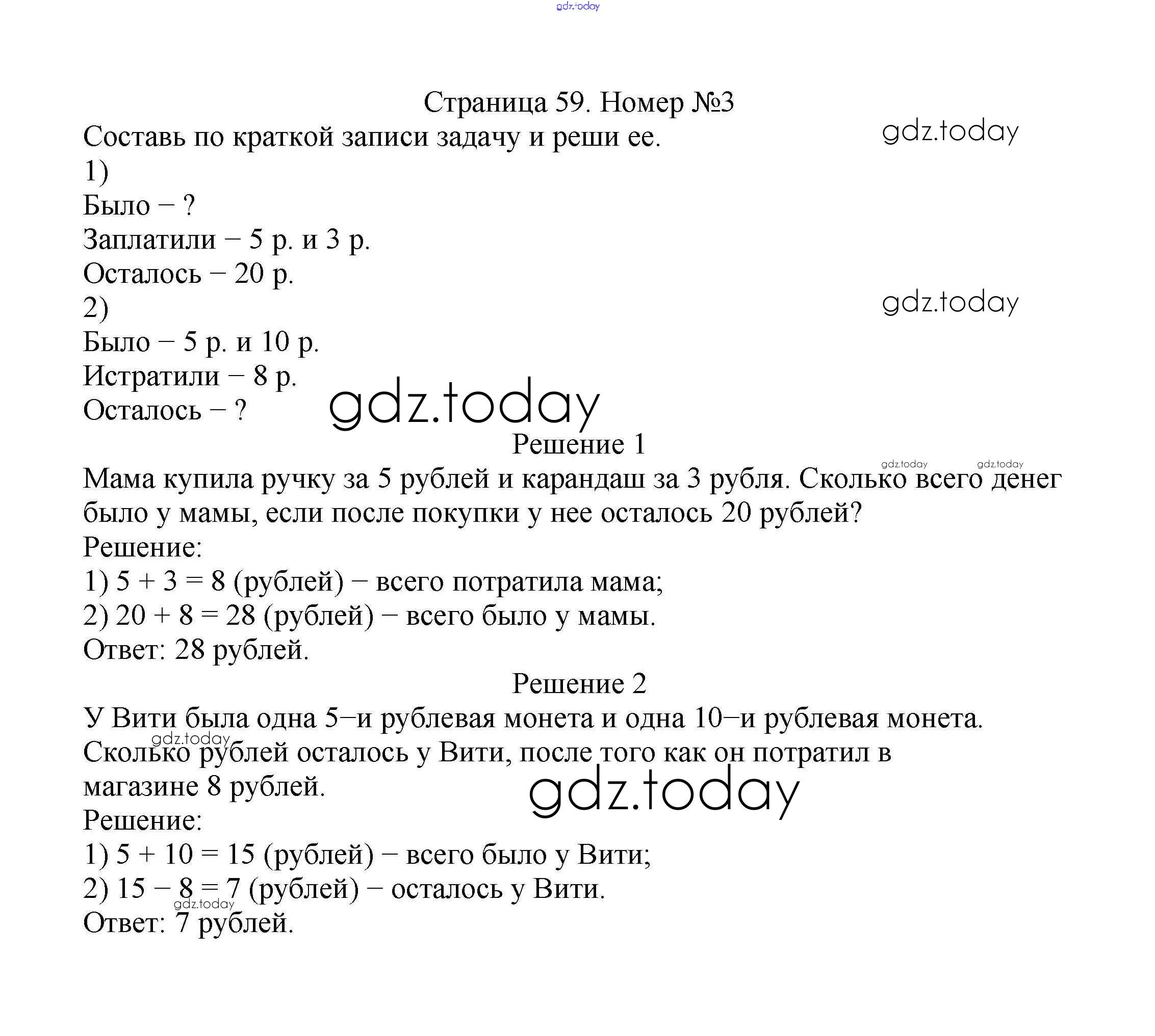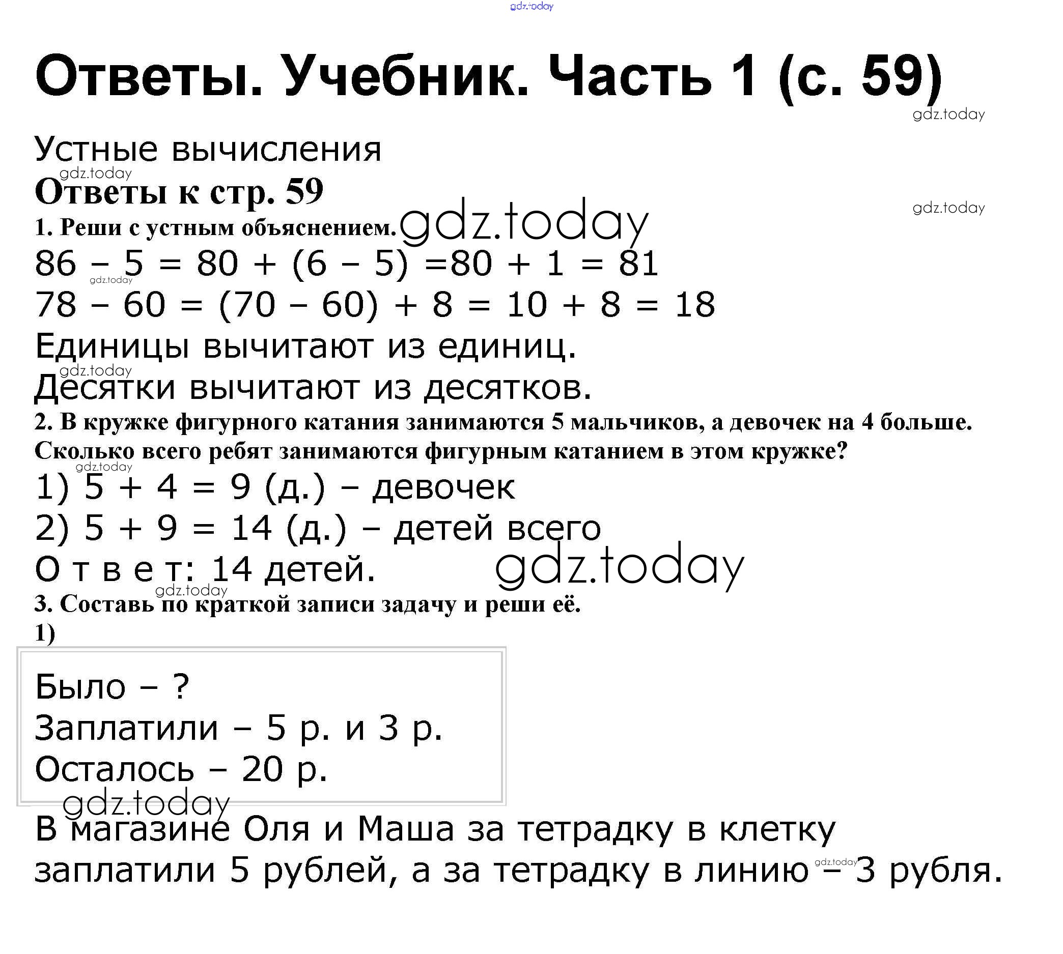 Ответы к Решение к части 1. Страницы 59 Учебнику по Математике для 2 класса Моро, Бантова Просвещение Школа России 2015