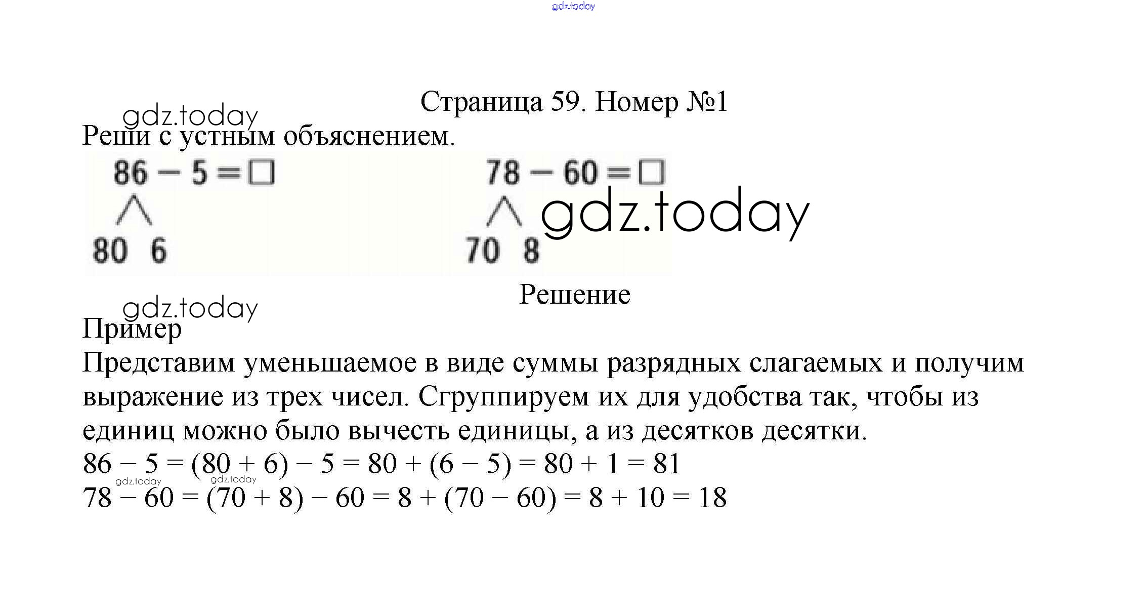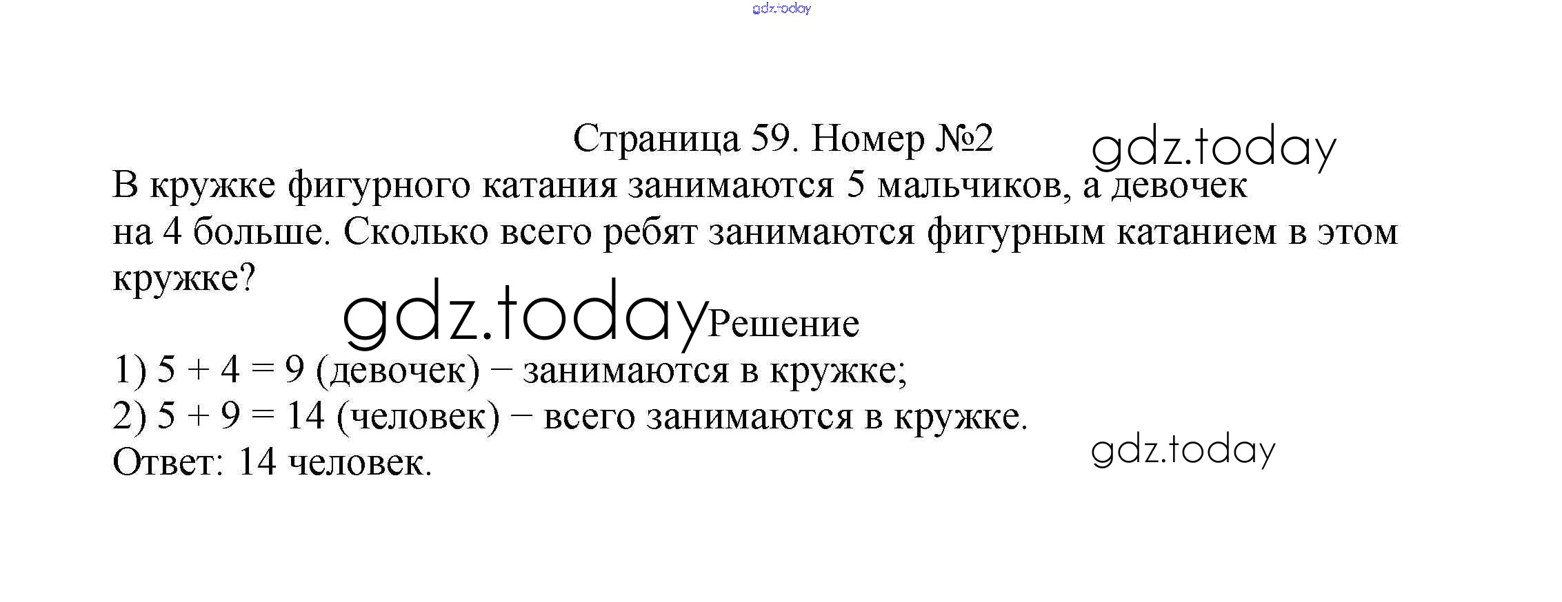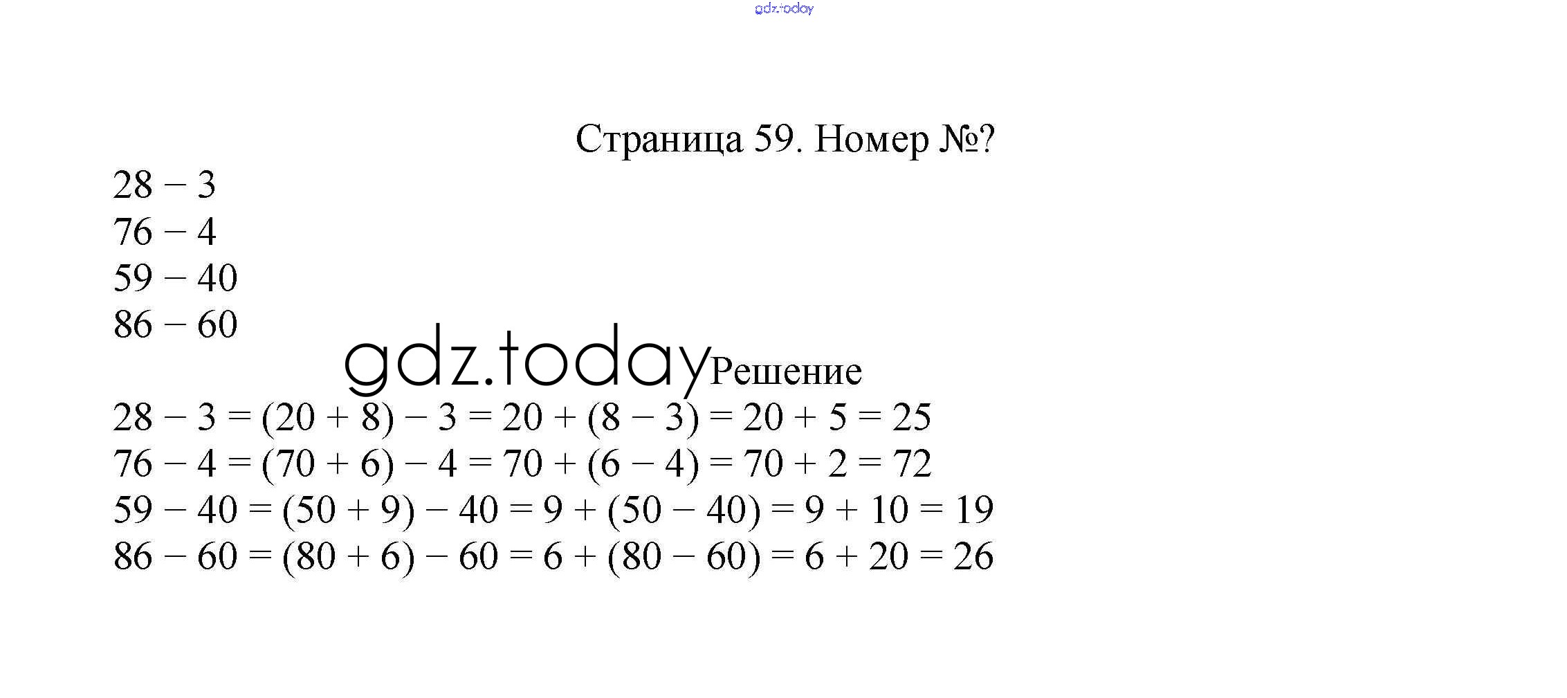 На страницах сайта gdz.today вы найдете учебный и вспомогательный материал, направленный на улучшения знаний школьной программы. ГДЗ - онлайн мир знаний Решение к части 1. Страницы 59 Учебнику по Математике для 2 класса Моро, Бантова Просвещение Школа России 2015