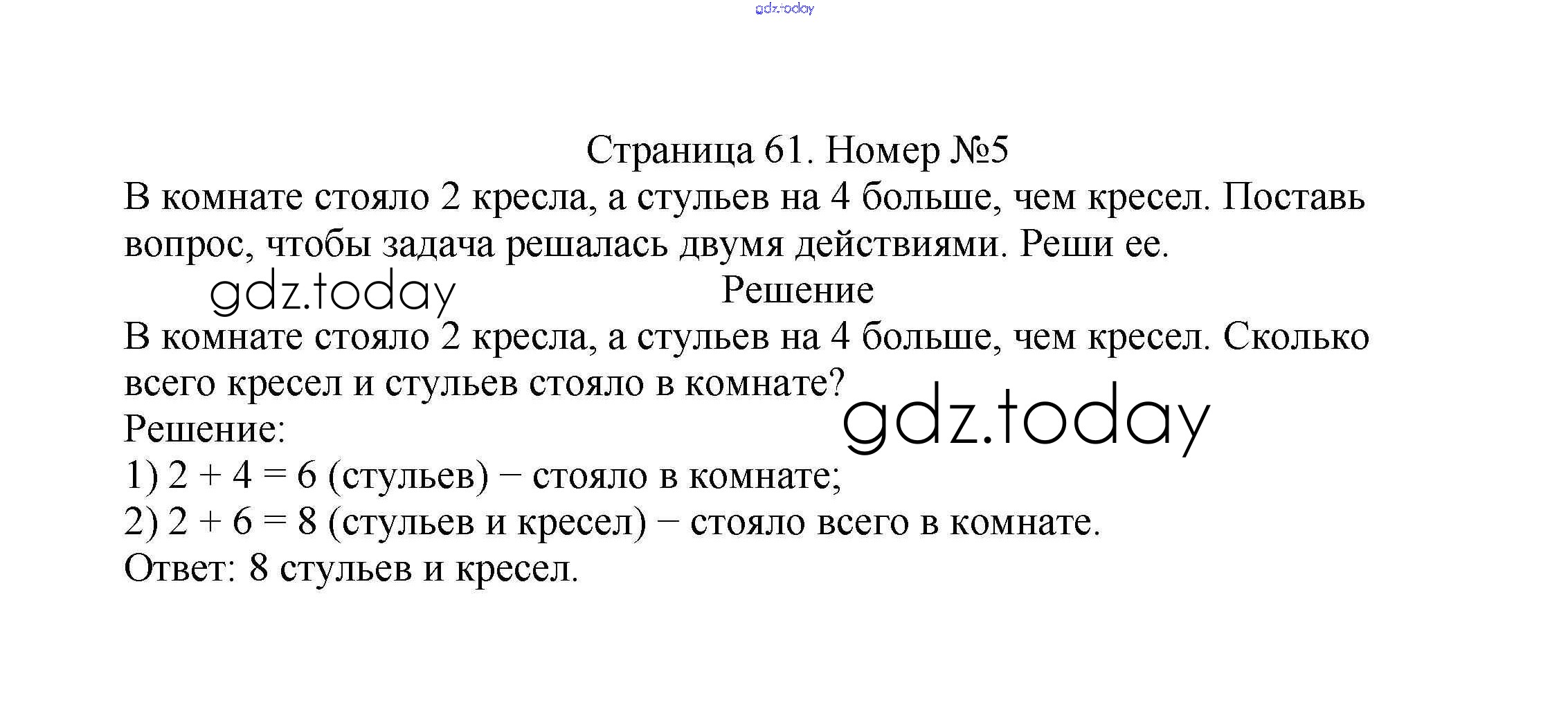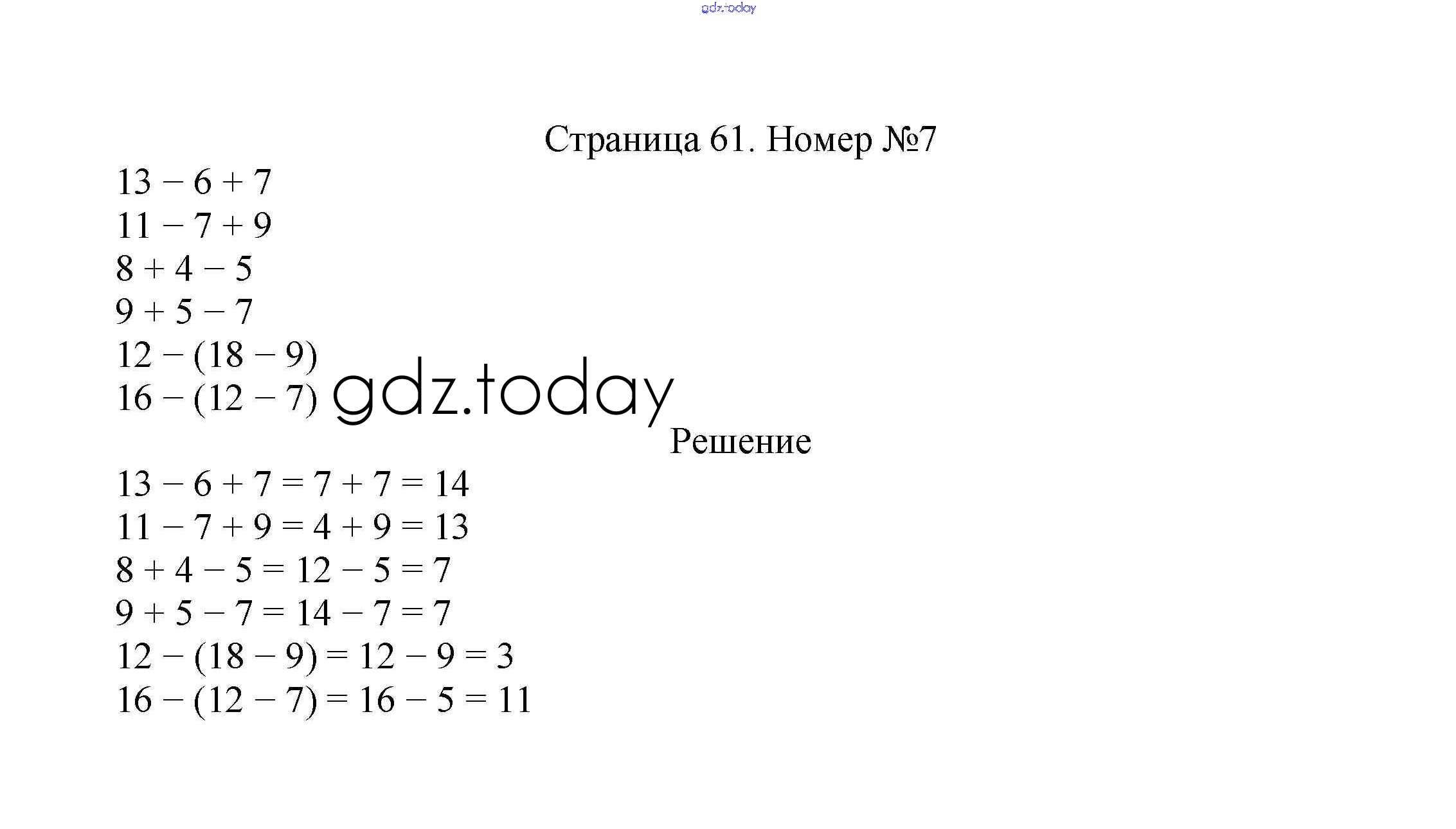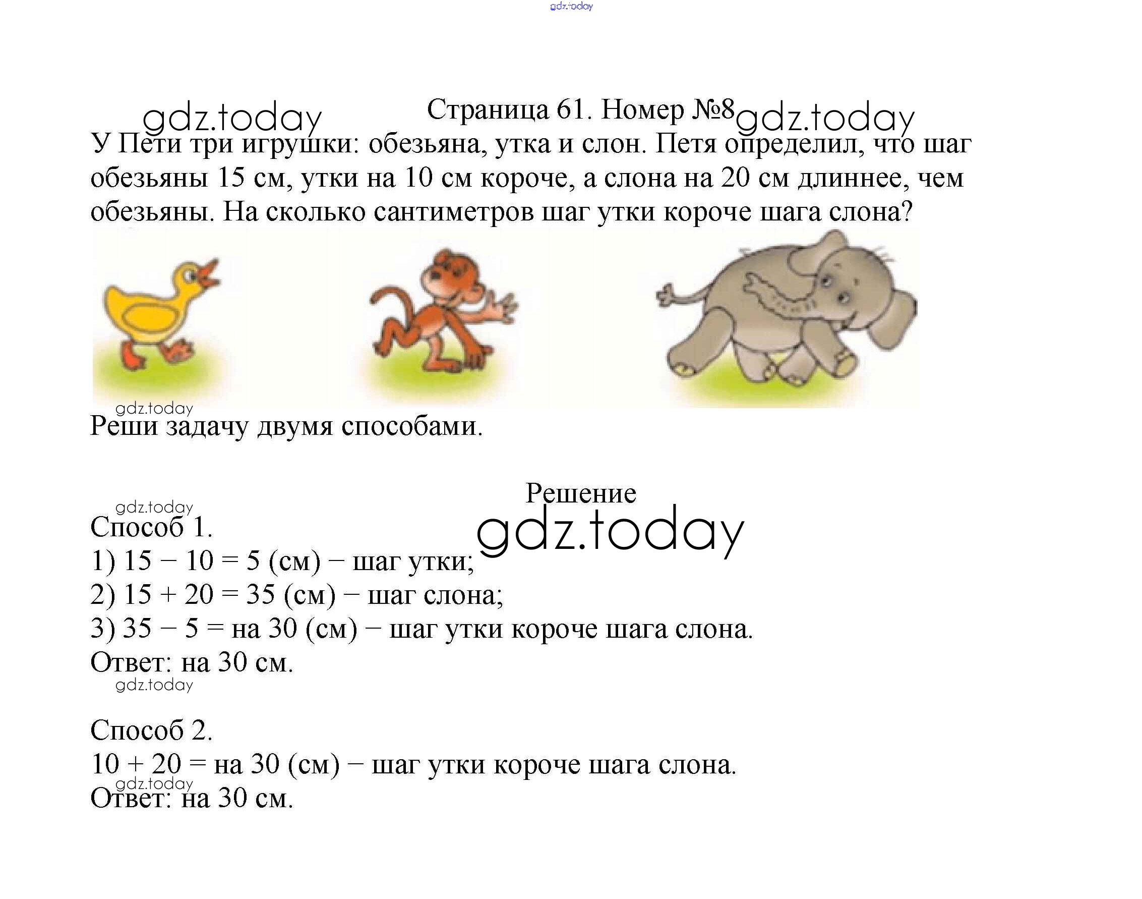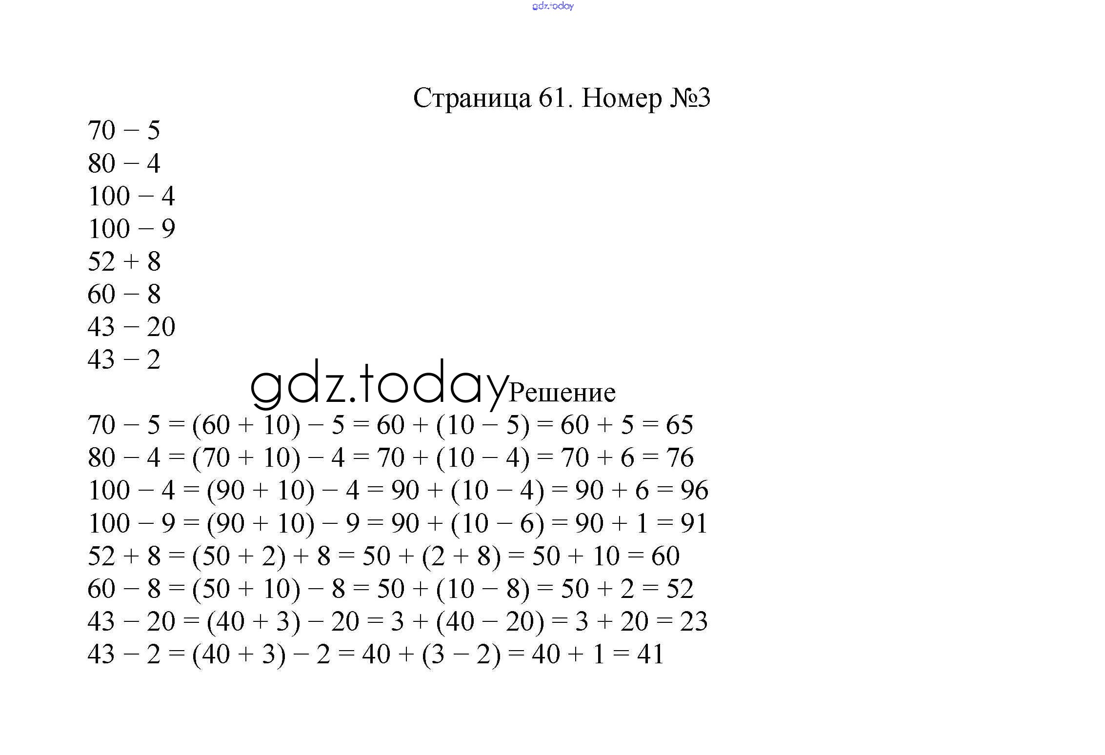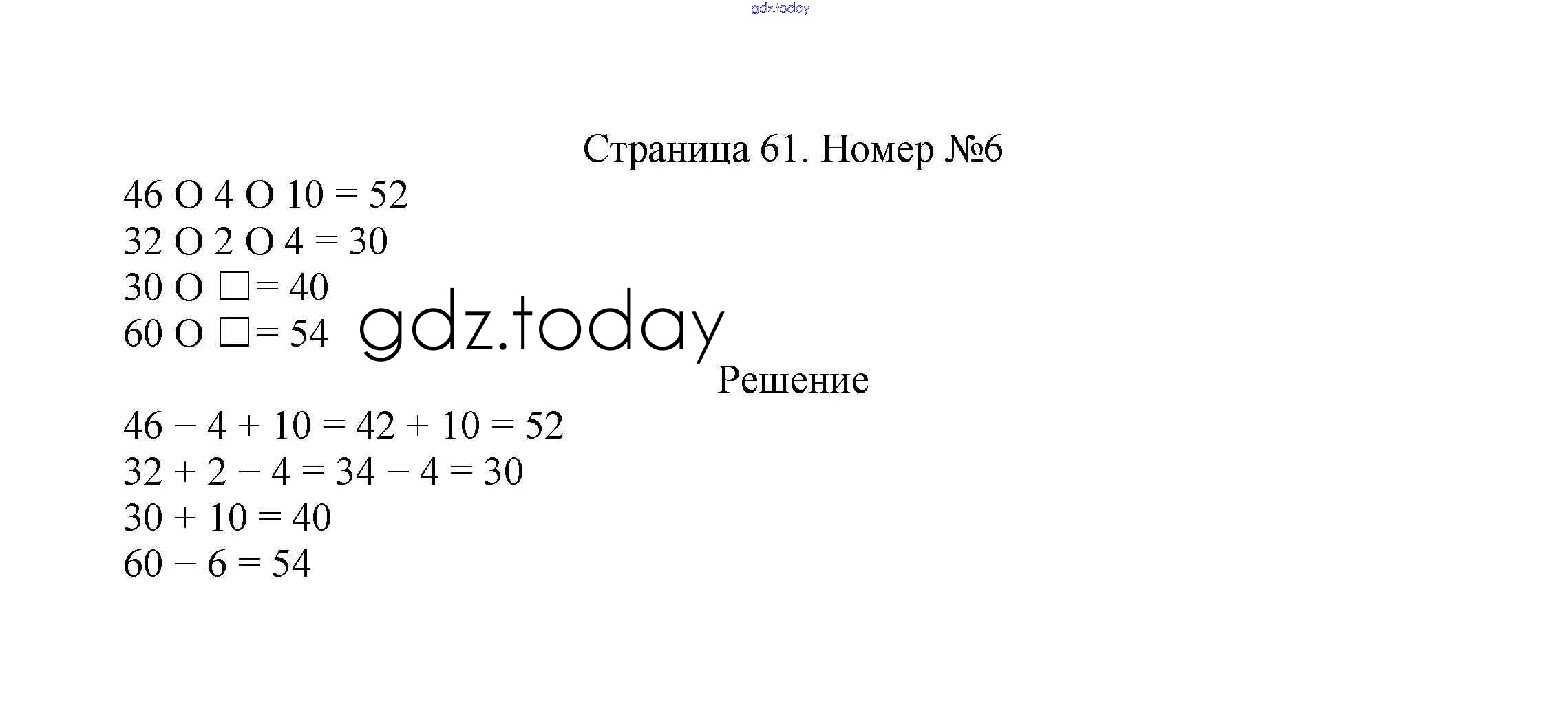 На страницах сайта gdz.today вы найдете учебный и вспомогательный материал, направленный на улучшения знаний школьной программы. ГДЗ - онлайн мир знаний Решение к части 1. Страницы 61 Учебнику по Математике для 2 класса Моро, Бантова Просвещение Школа России 2015