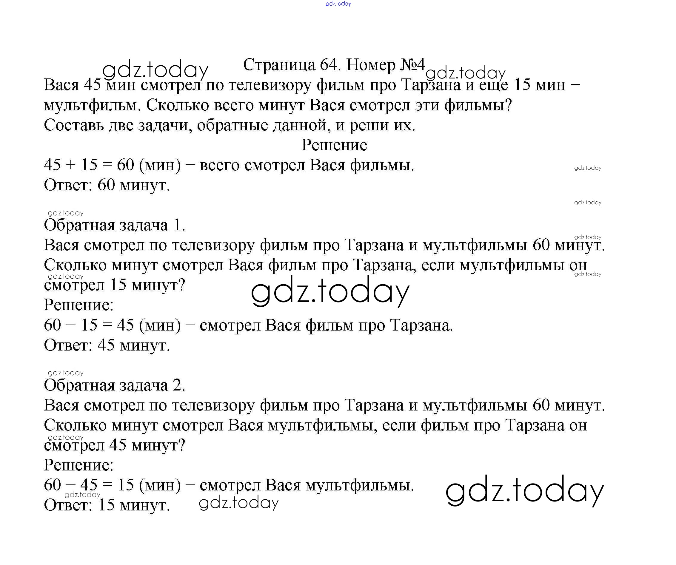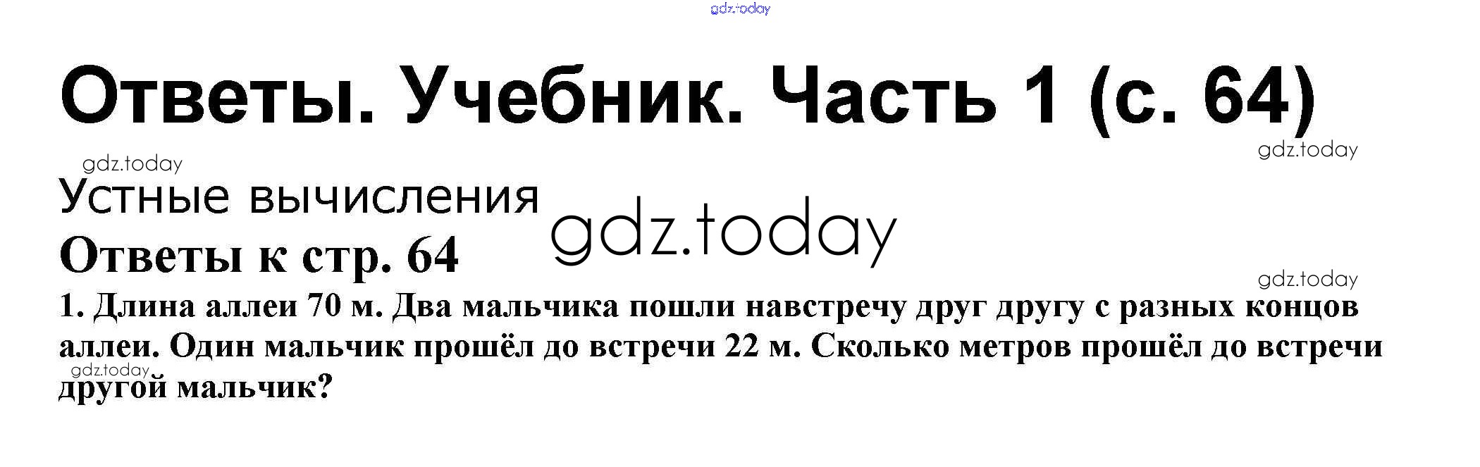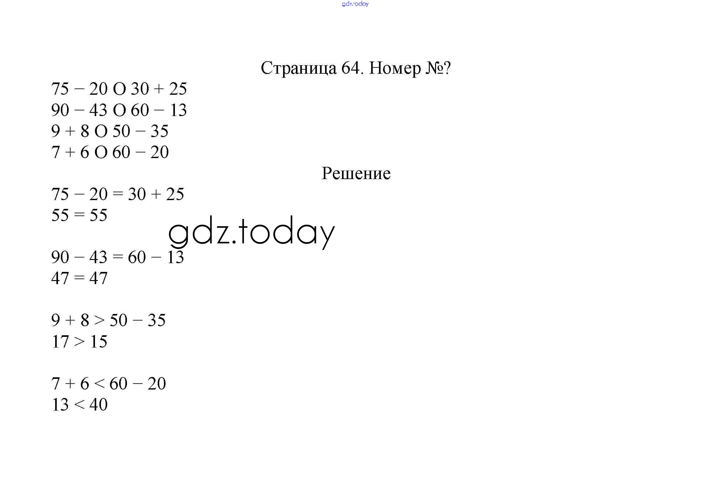На страницах сайта gdz.today вы найдете учебный и вспомогательный материал, направленный на улучшения знаний школьной программы. ГДЗ - онлайн мир знаний Решение к части 1. Страницы 64 Учебнику по Математике для 2 класса Моро, Бантова Просвещение Школа России 2015