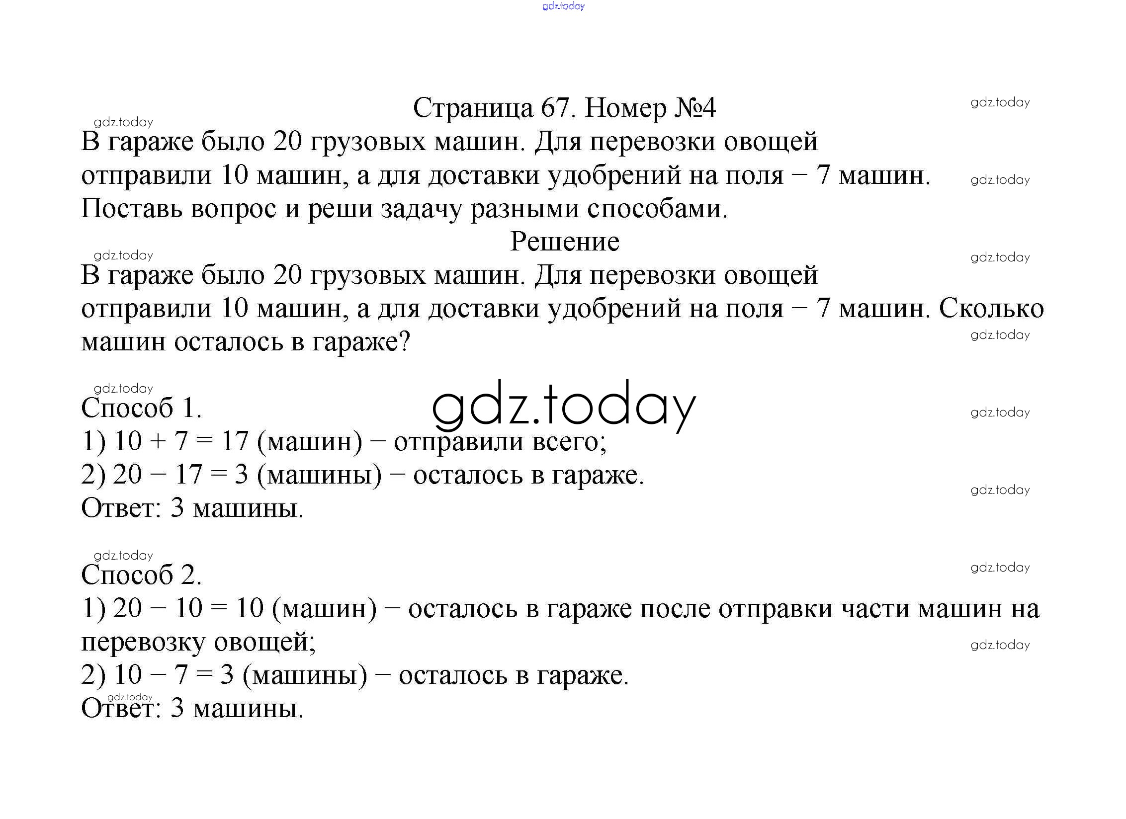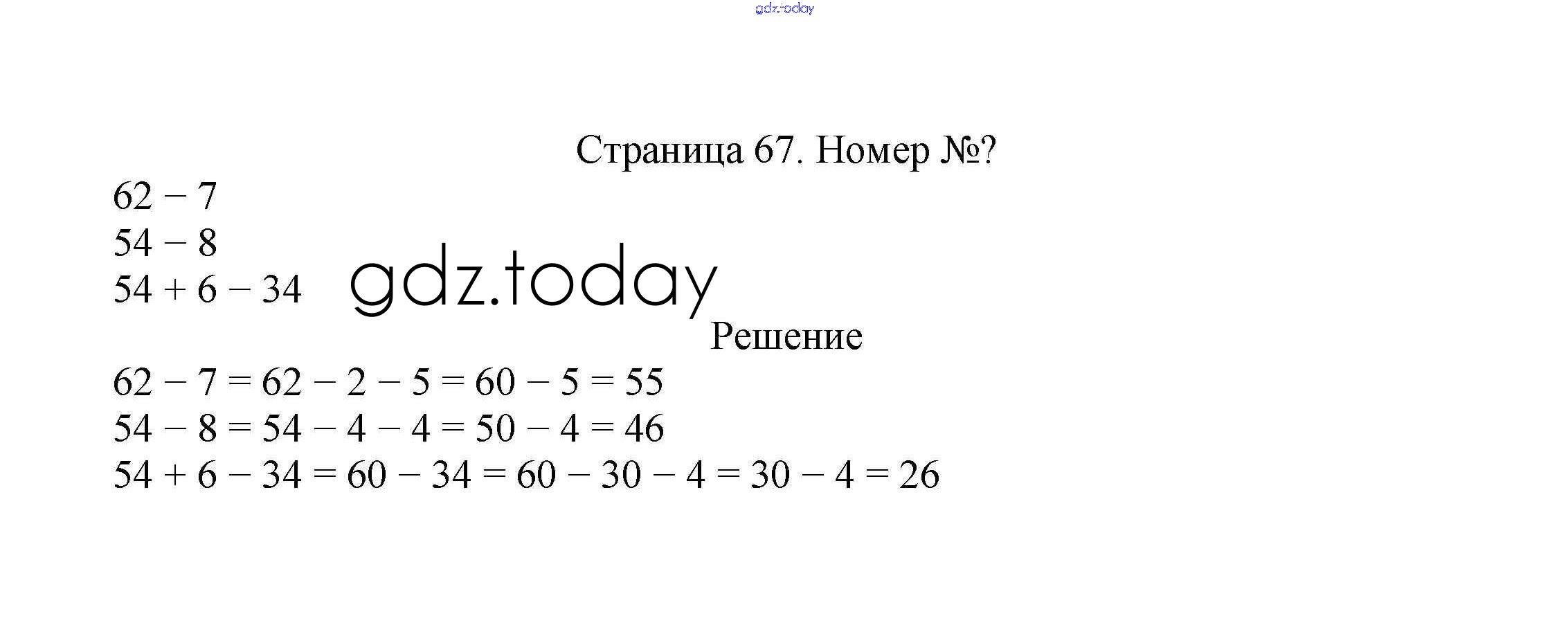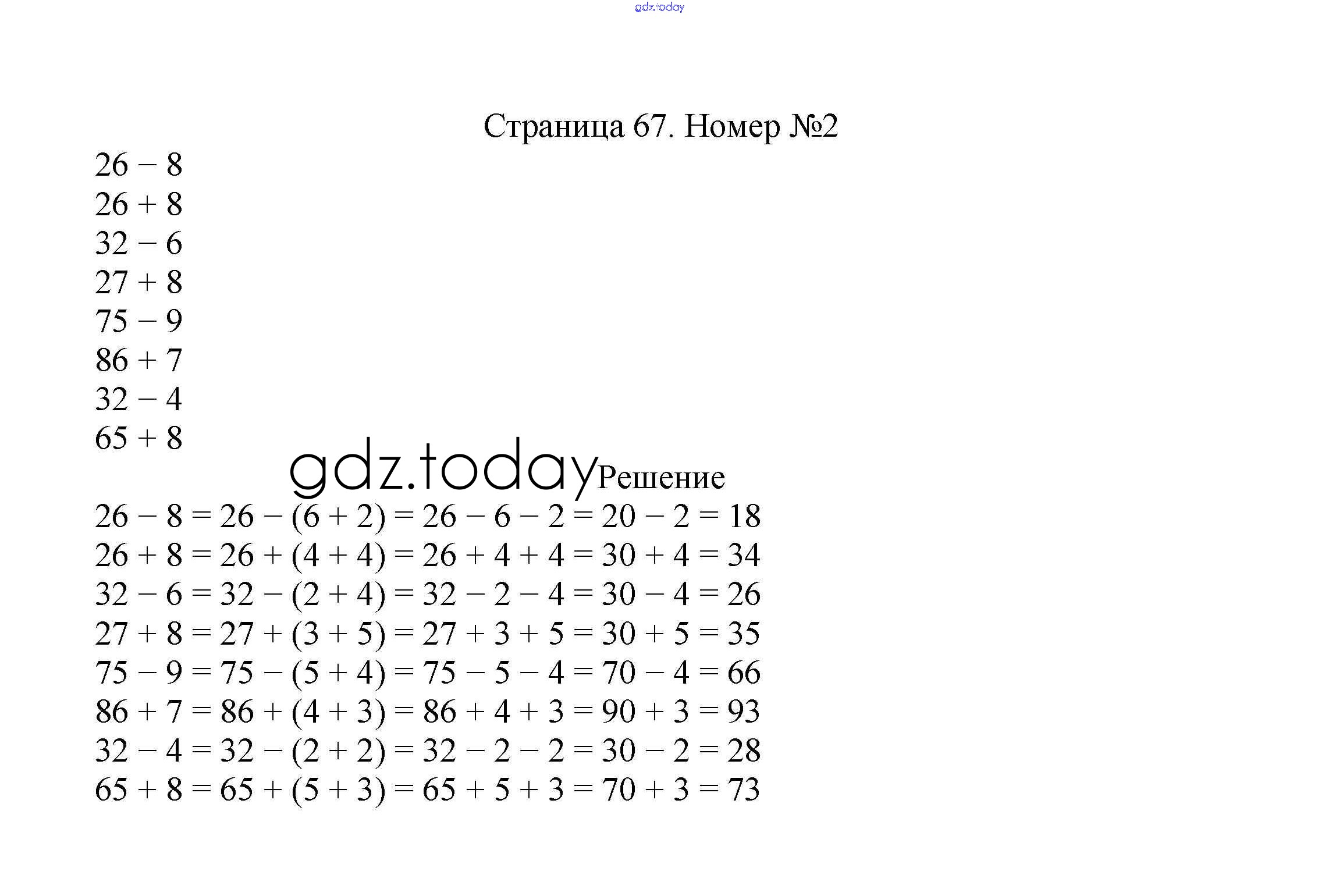 На страницах сайта gdz.today вы найдете учебный и вспомогательный материал, направленный на улучшения знаний школьной программы. ГДЗ - онлайн мир знаний Решение к части 1. Страницы 67 Учебнику по Математике для 2 класса Моро, Бантова Просвещение Школа России 2015