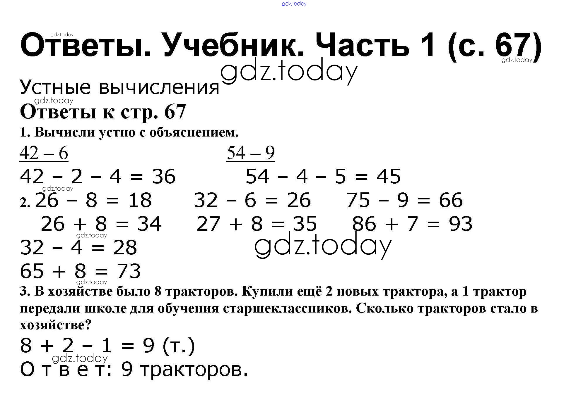 Ответы к Решение к части 1. Страницы 67 Учебнику по Математике для 2 класса Моро, Бантова Просвещение Школа России 2015
