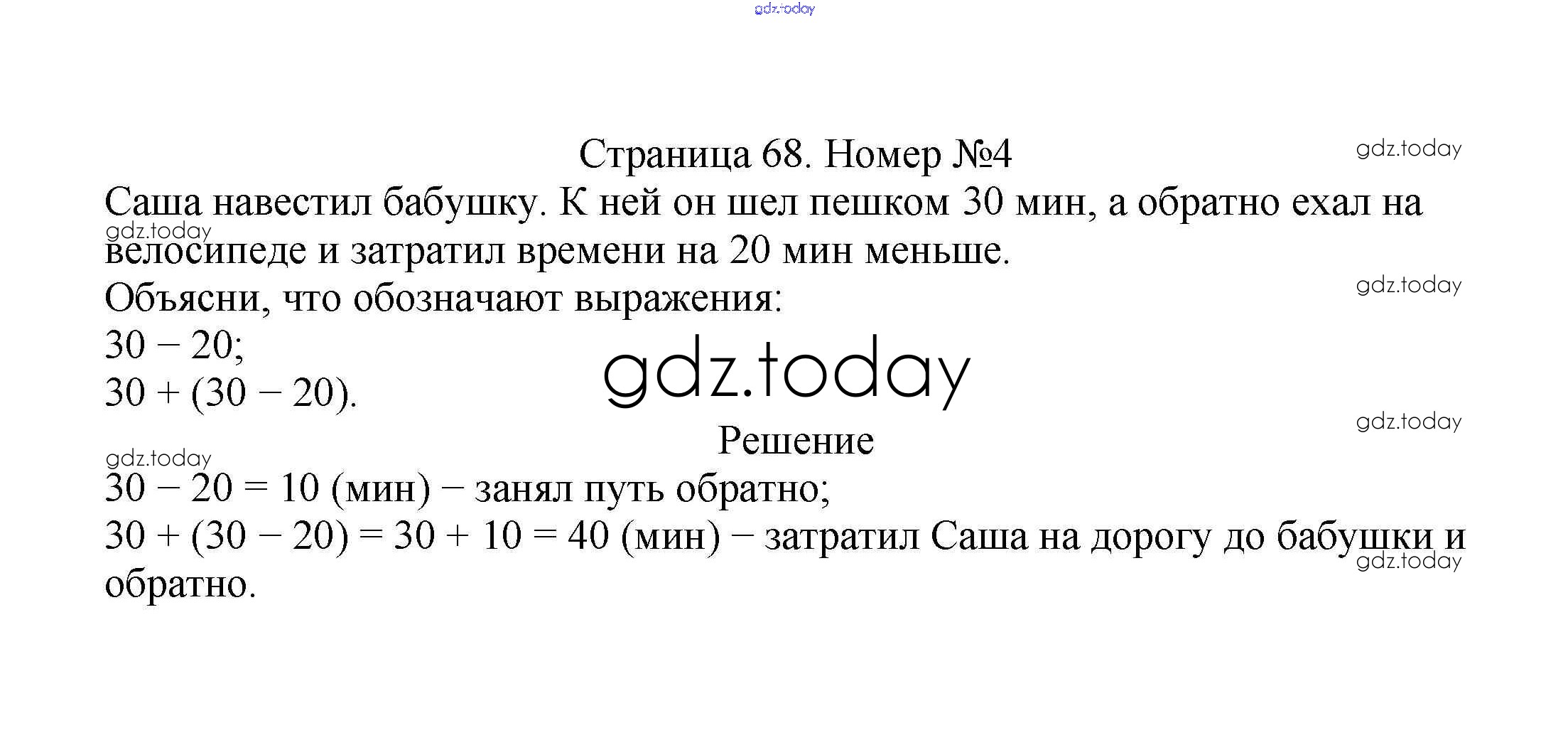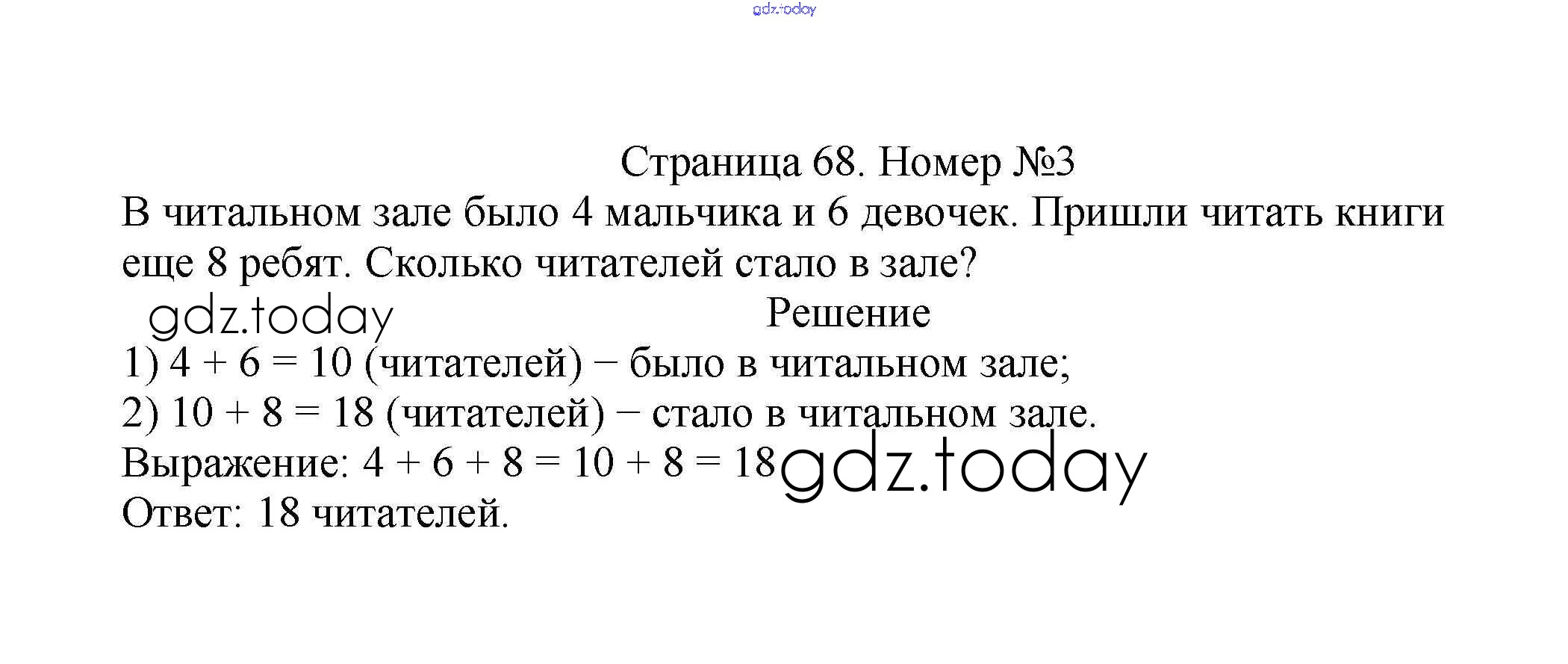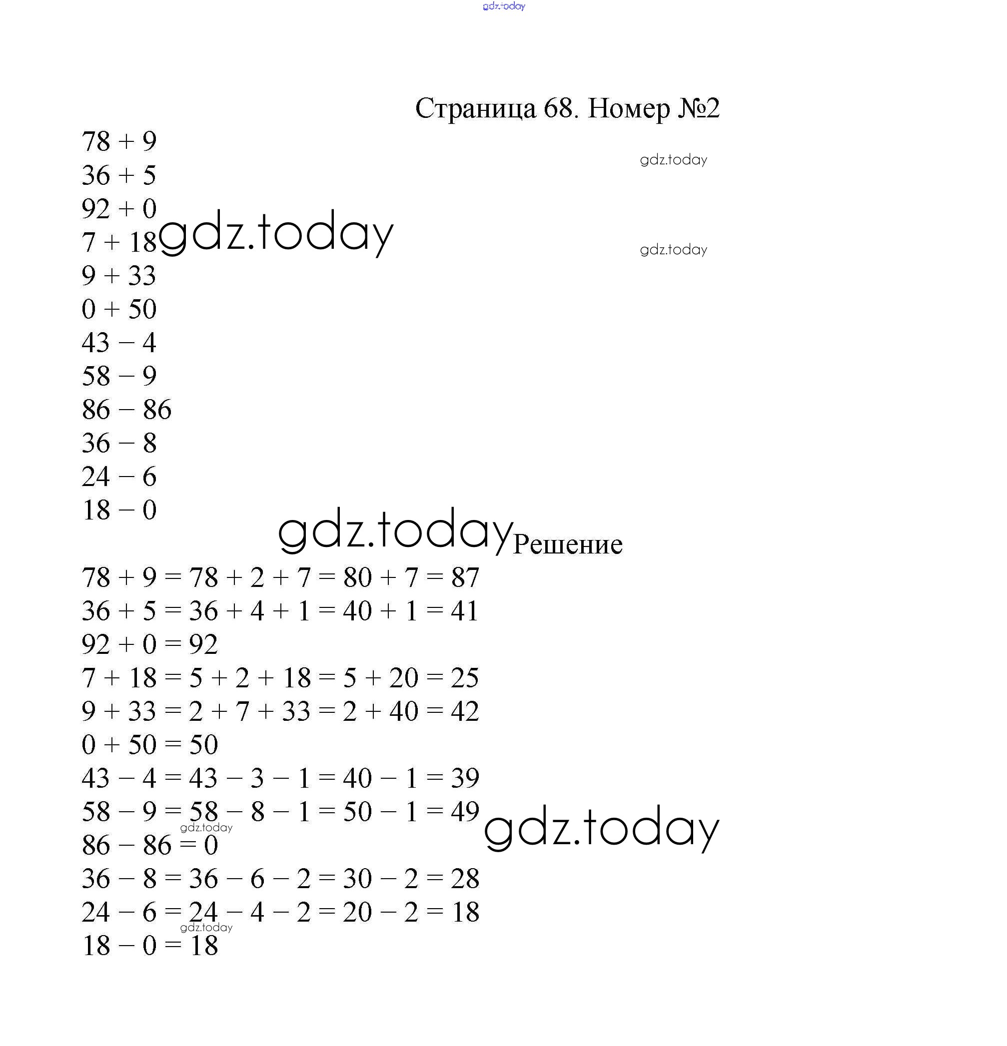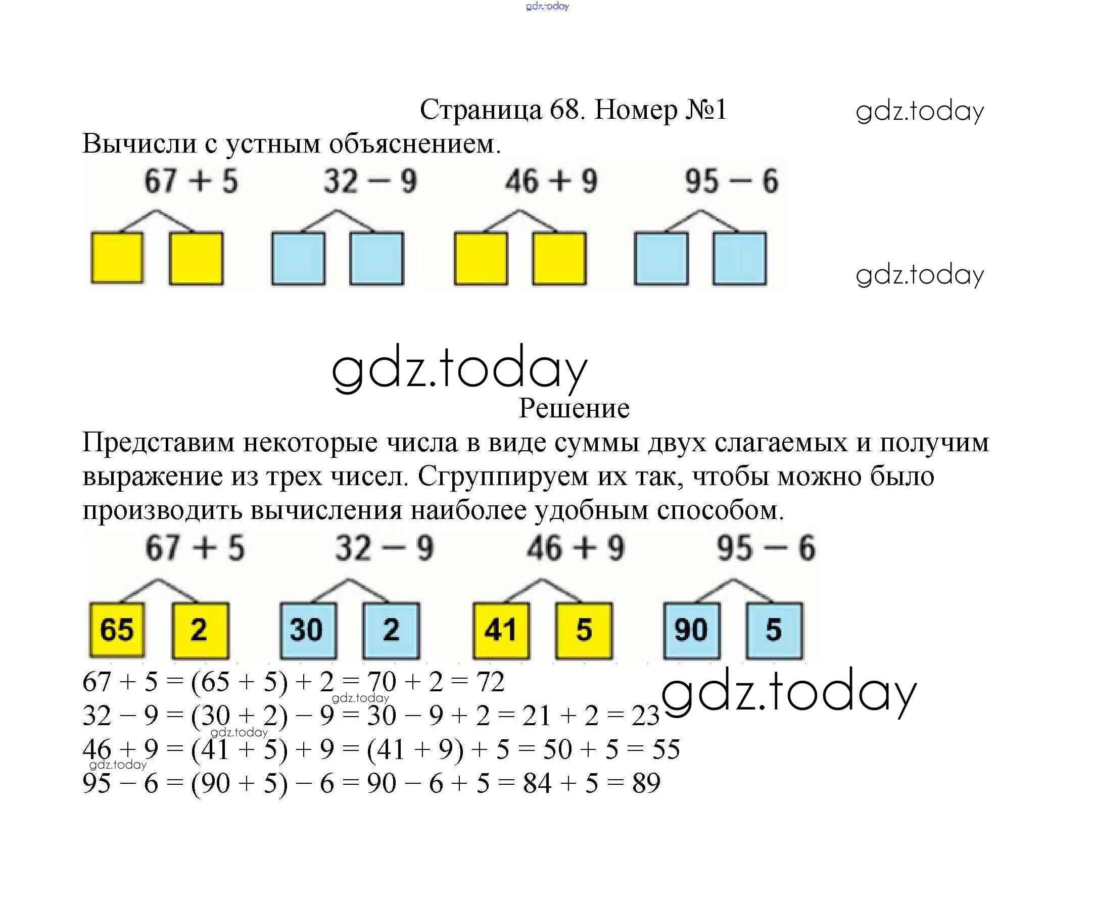 На страницах сайта gdz.today вы найдете учебный и вспомогательный материал, направленный на улучшения знаний школьной программы. ГДЗ - онлайн мир знаний Решение к части 1. Страницы 68 Учебнику по Математике для 2 класса Моро, Бантова Просвещение Школа России 2015