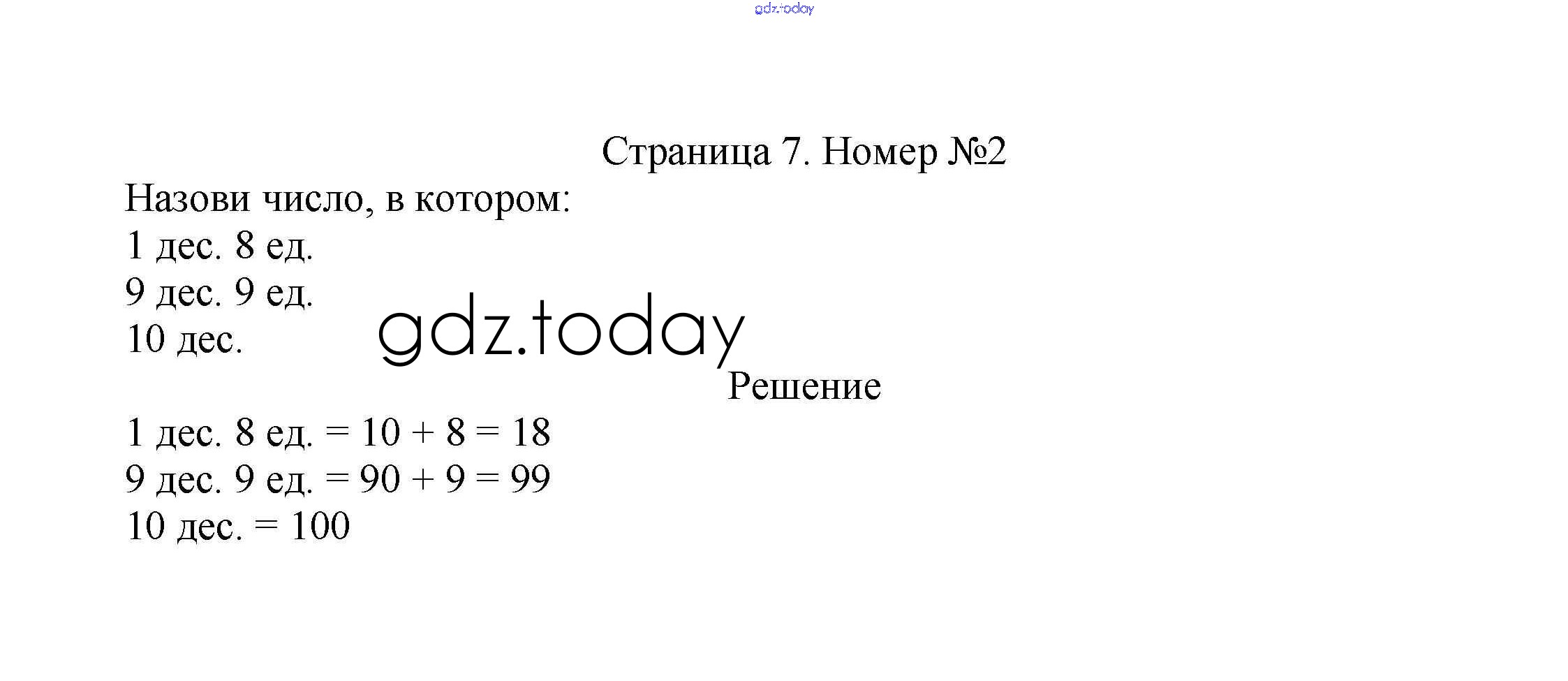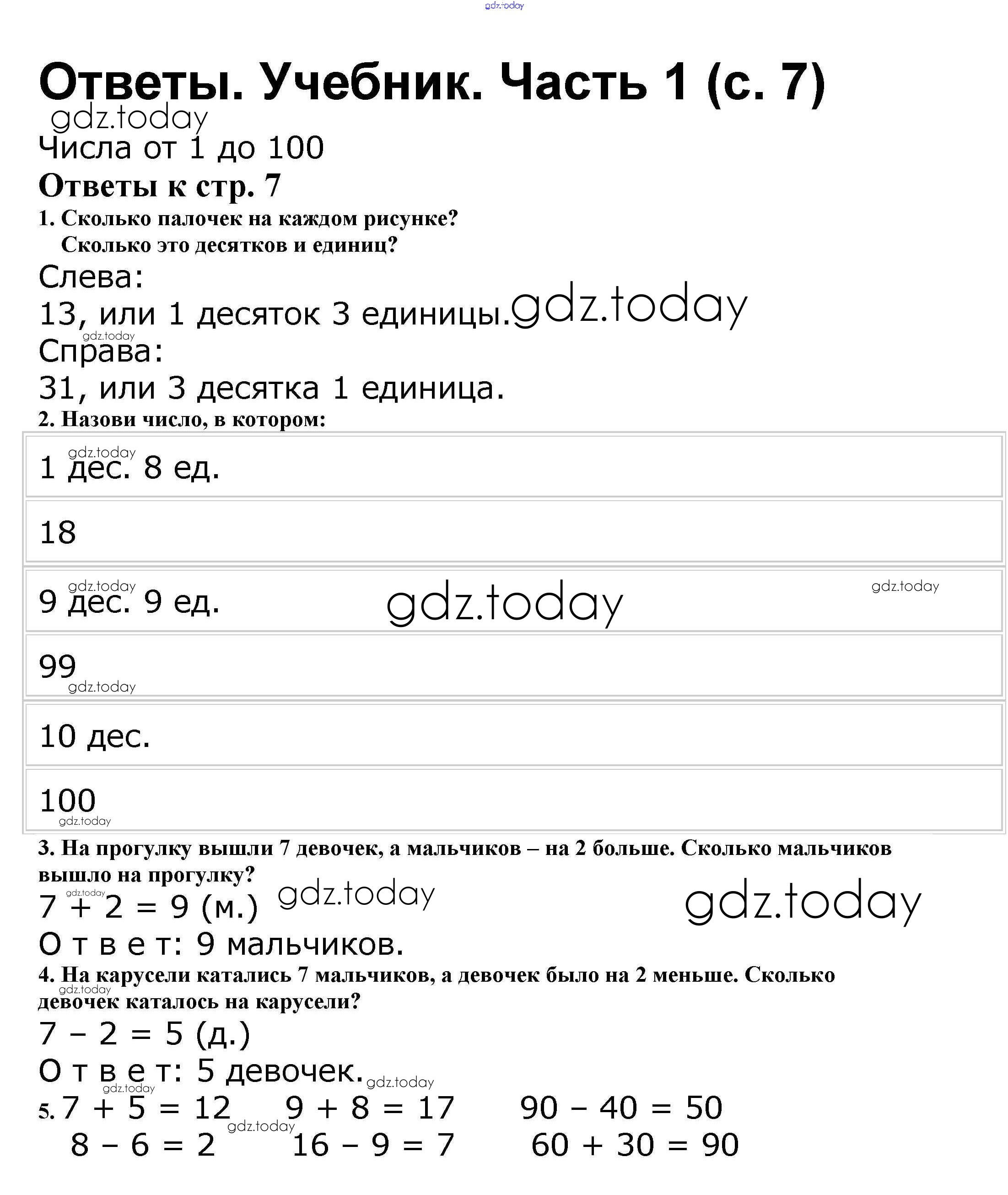На страницах сайта gdz.today вы найдете учебный и вспомогательный материал, направленный на улучшения знаний школьной программы. ГДЗ - онлайн мир знаний Решение к части 1. Страницы 7 Учебнику по Математике для 2 класса Моро, Бантова Просвещение Школа России 2015