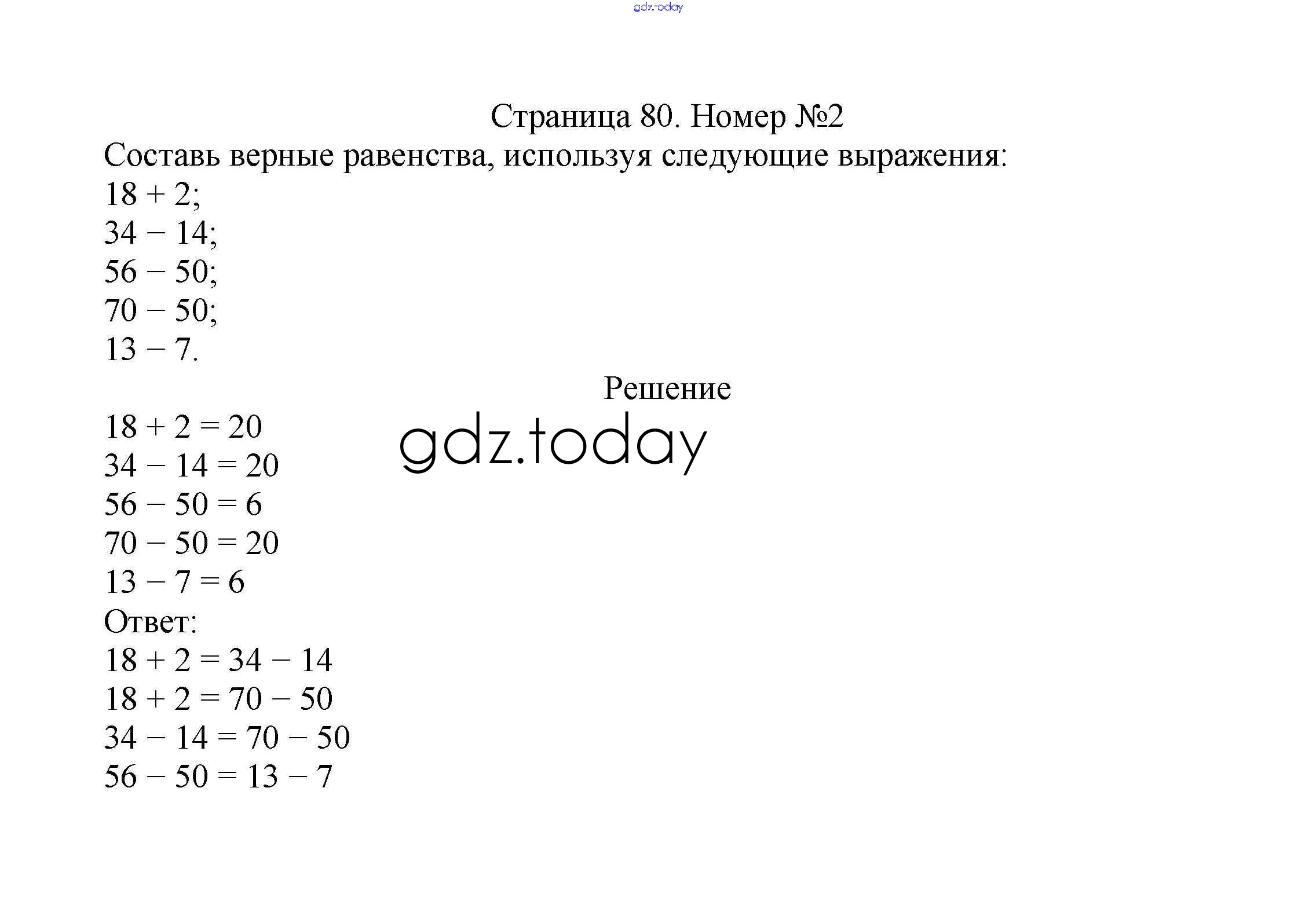 На страницах сайта gdz.today вы найдете учебный и вспомогательный материал, направленный на улучшения знаний школьной программы. ГДЗ - онлайн мир знаний Решение к части 1. Страницы 80 Учебнику по Математике для 2 класса Моро, Бантова Просвещение Школа России 2015