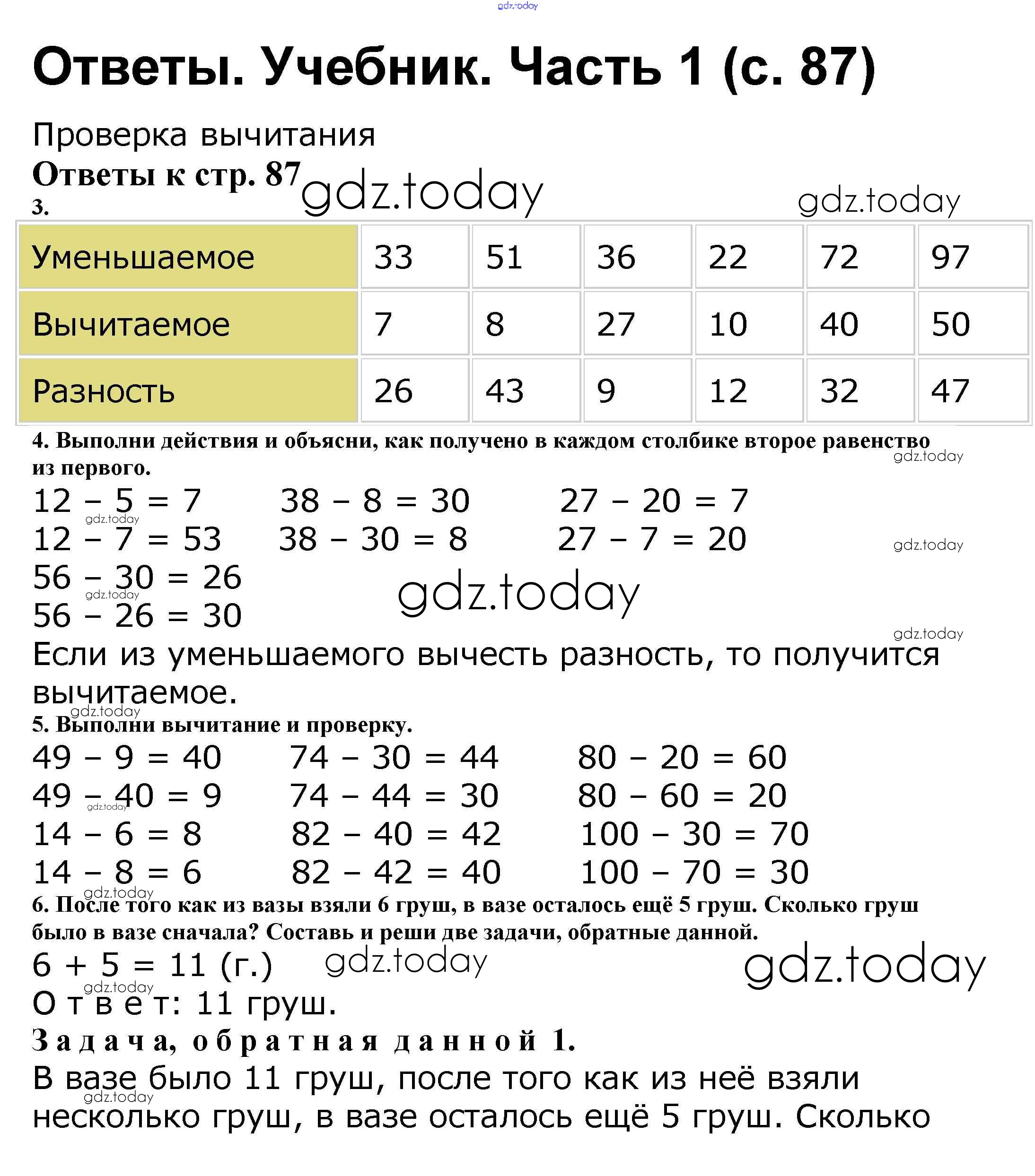 Ответы к Решение к части 1. Страницы 87 Учебнику по Математике для 2 класса Моро, Бантова Просвещение Школа России 2015