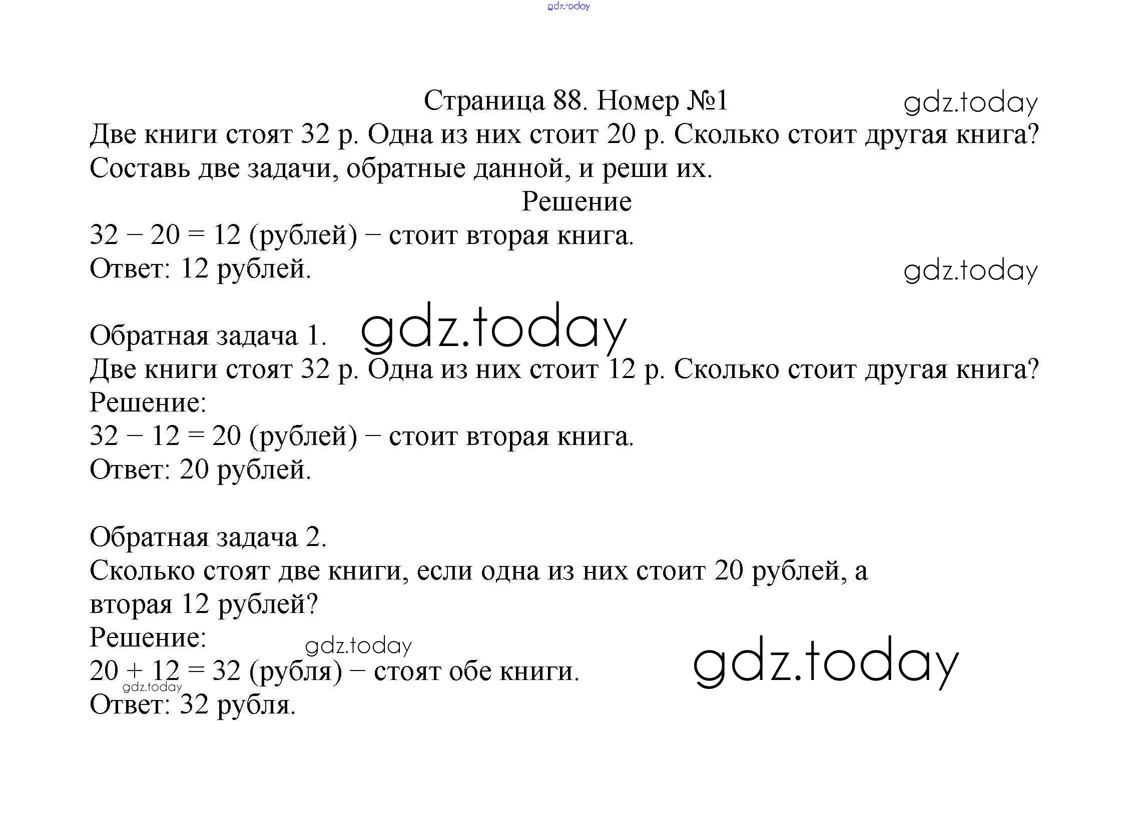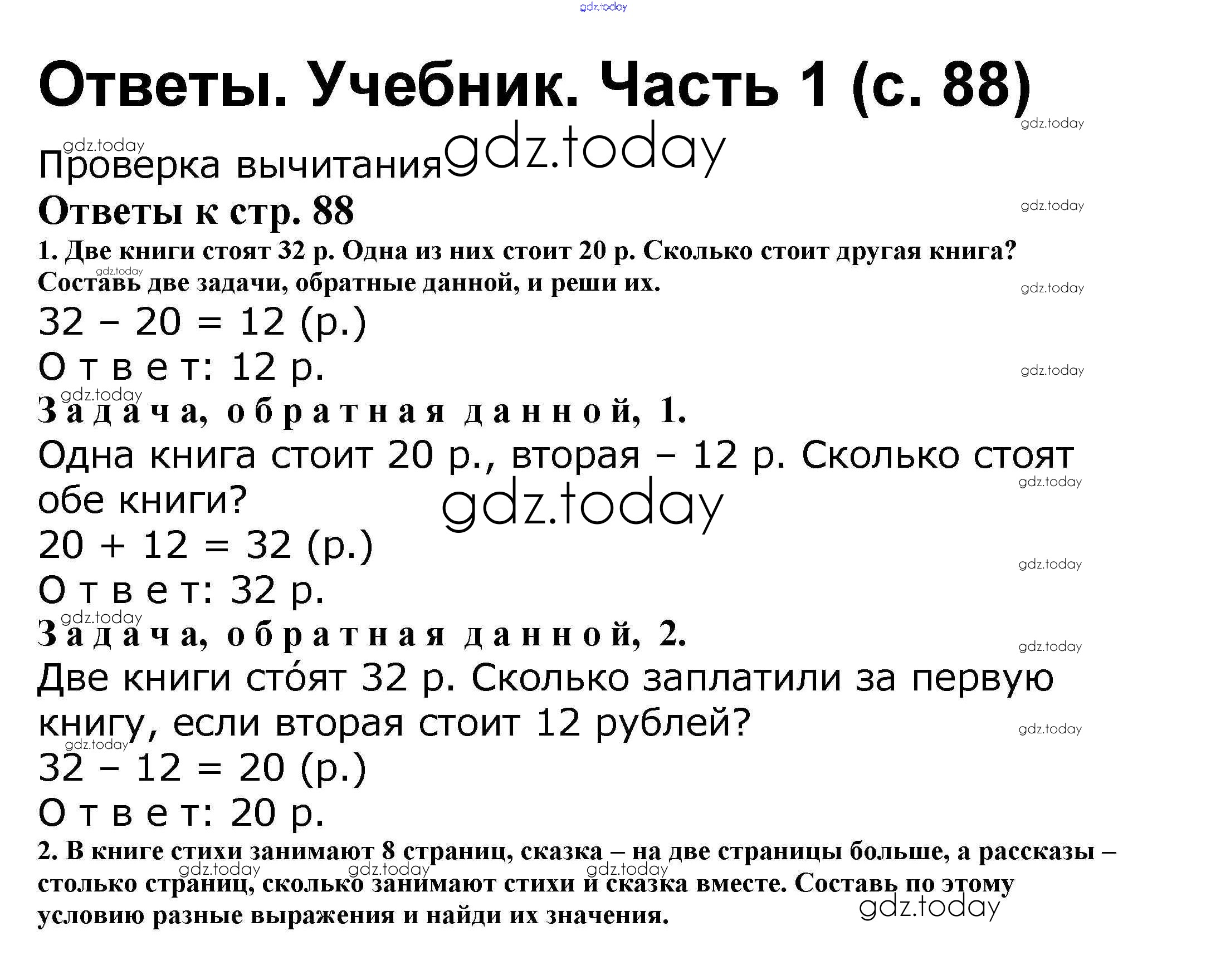 Ответы к Решение к части 1. Страницы 88 Учебнику по Математике для 2 класса Моро, Бантова Просвещение Школа России 2015