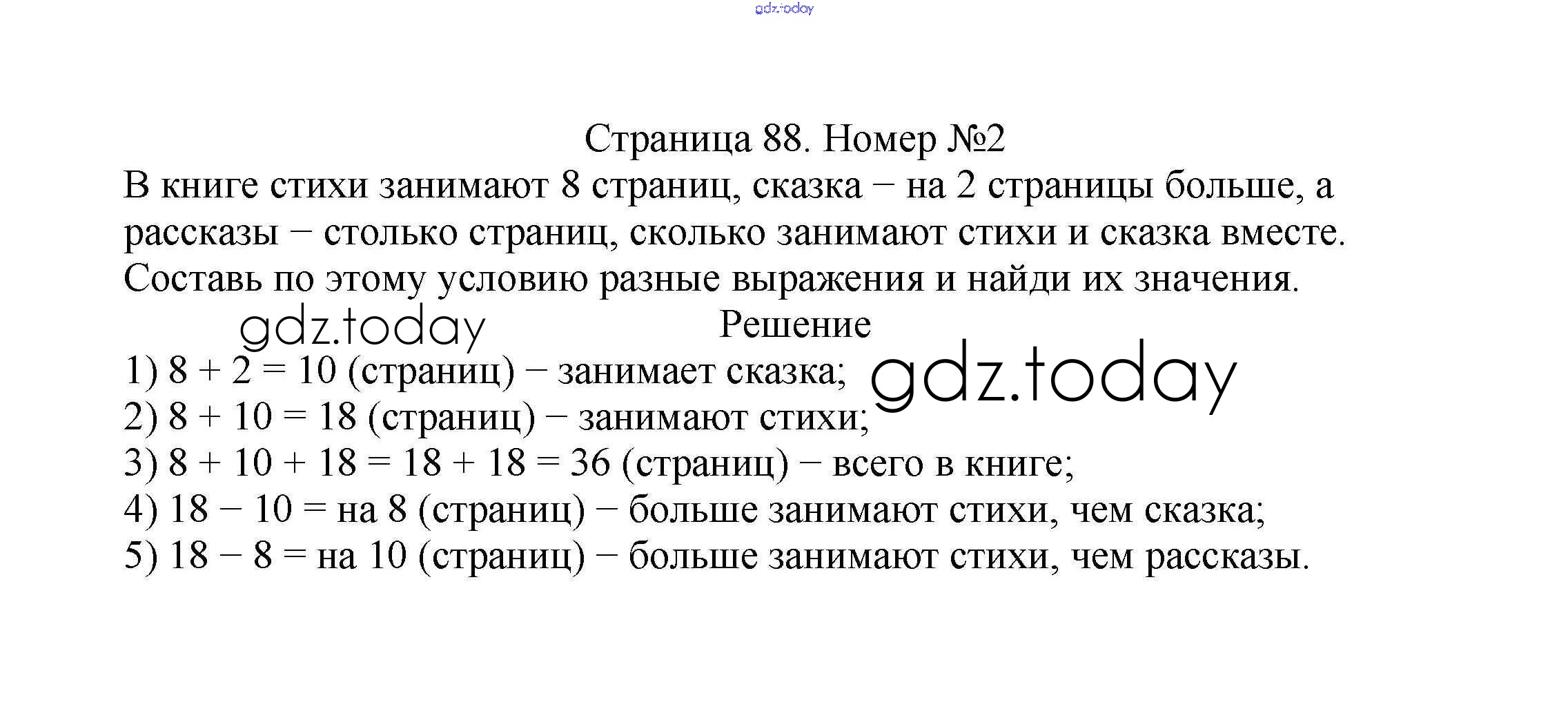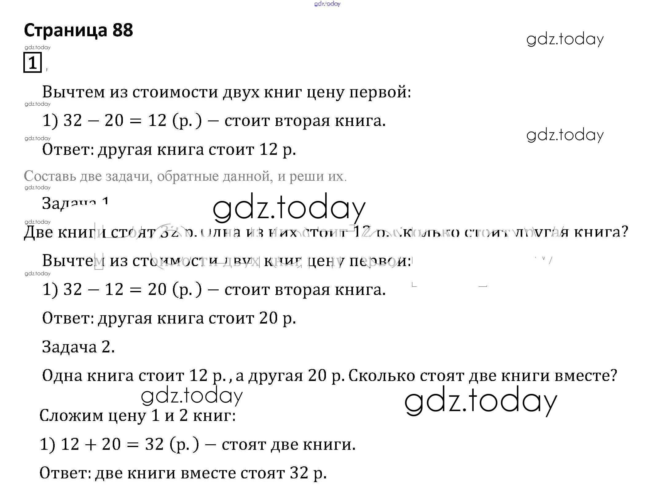 На страницах сайта gdz.today вы найдете учебный и вспомогательный материал, направленный на улучшения знаний школьной программы. ГДЗ - онлайн мир знаний Решение к части 1. Страницы 88 Учебнику по Математике для 2 класса Моро, Бантова Просвещение Школа России 2015
