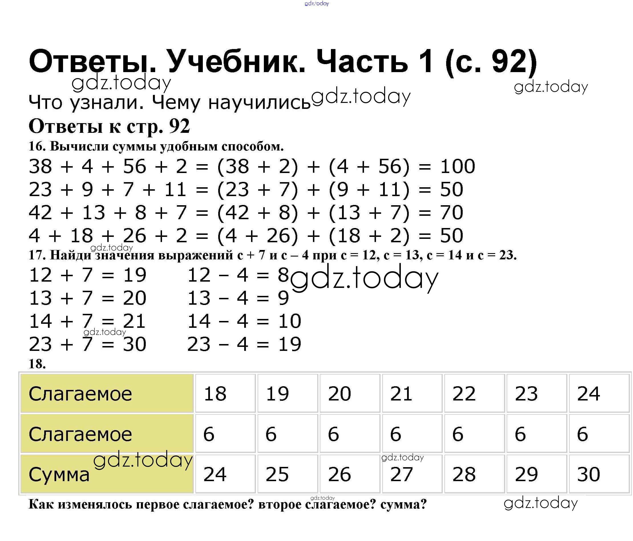 На страницах сайта gdz.today вы найдете учебный и вспомогательный материал, направленный на улучшения знаний школьной программы. ГДЗ - онлайн мир знаний Решение к части 1. Страницы 92 Учебнику по Математике для 2 класса Моро, Бантова Просвещение Школа России 2015