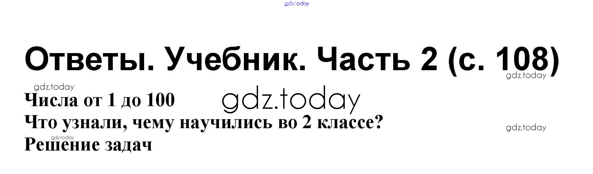 На страницах сайта gdz.today вы найдете учебный и вспомогательный материал, направленный на улучшения знаний школьной программы. ГДЗ - онлайн мир знаний Решение к части 2. Страницы 108 Учебнику по Математике для 2 класса Моро, Бантова Просвещение Школа России 2015