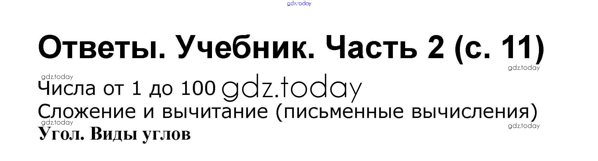 На страницах сайта gdz.today вы найдете учебный и вспомогательный материал, направленный на улучшения знаний школьной программы. ГДЗ - онлайн мир знаний Решение к части 2. Страницы 11 Учебнику по Математике для 2 класса Моро, Бантова Просвещение Школа России 2015