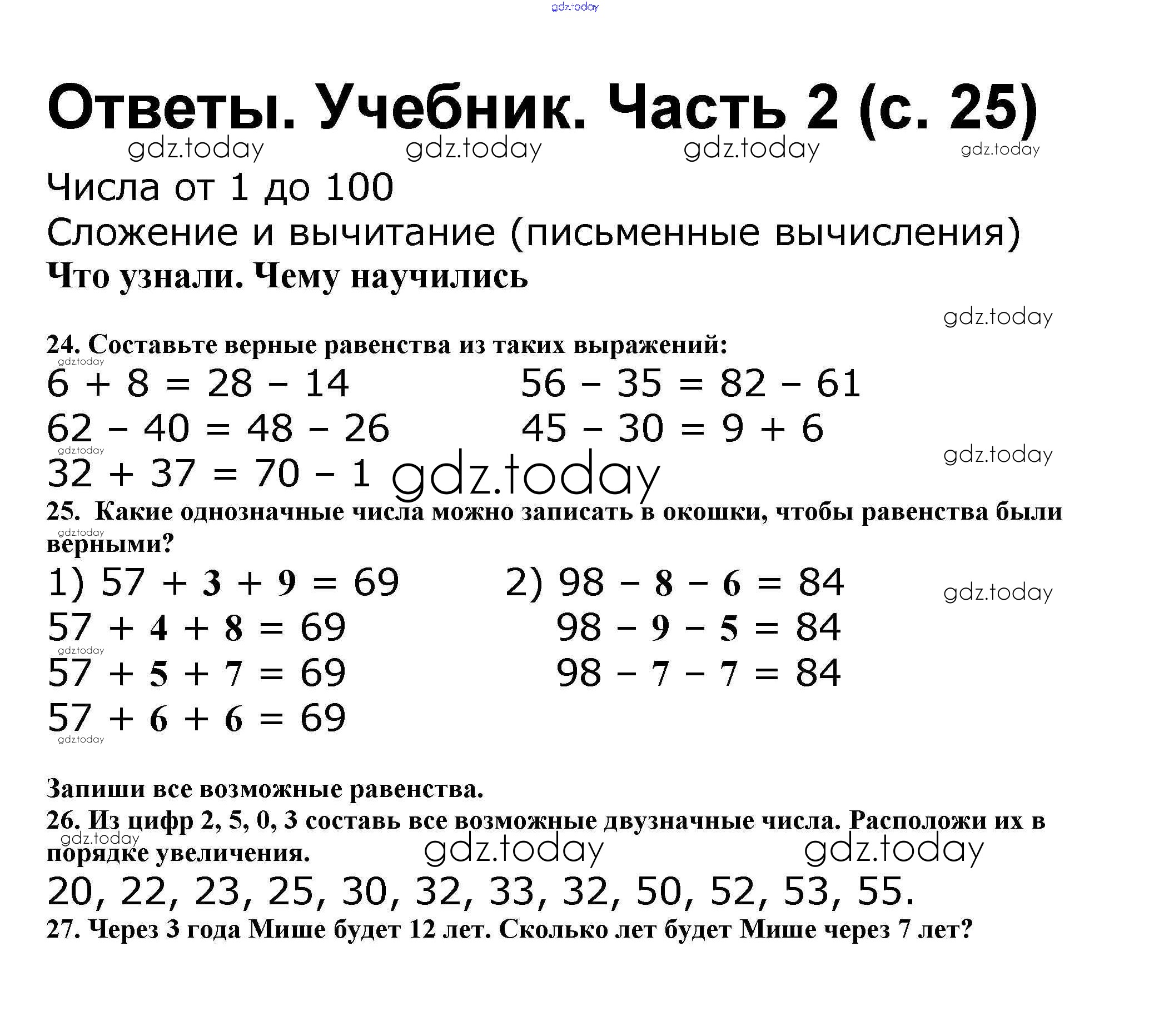 На страницах сайта gdz.today вы найдете учебный и вспомогательный материал, направленный на улучшения знаний школьной программы. ГДЗ - онлайн мир знаний Решение к части 2. Страницы 25 Учебнику по Математике для 2 класса Моро, Бантова Просвещение Школа России 2015