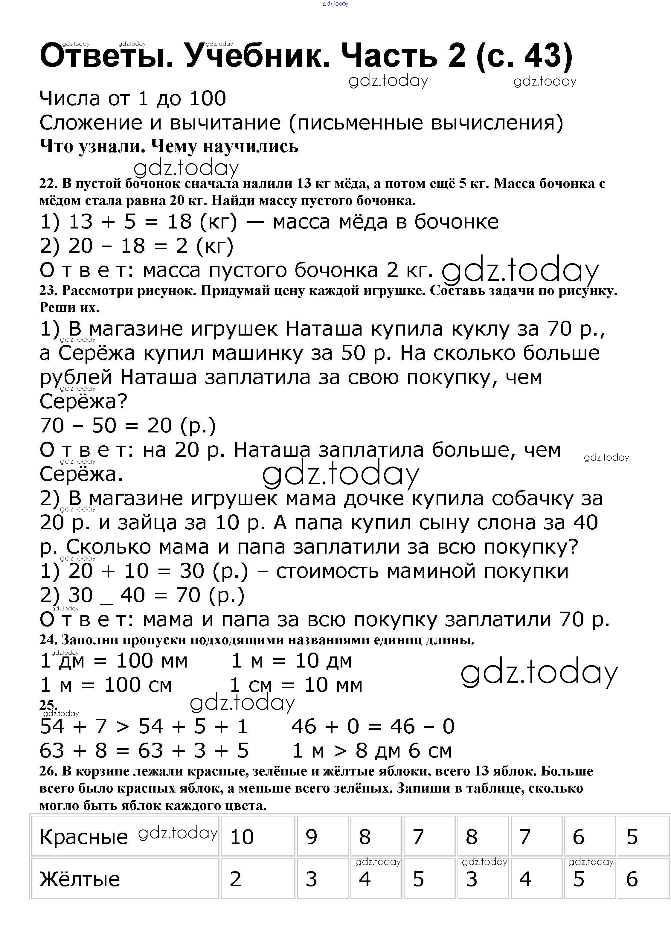 На страницах сайта gdz.today вы найдете учебный и вспомогательный материал, направленный на улучшения знаний школьной программы. ГДЗ - онлайн мир знаний Решение к части 2. Страницы 43 Учебнику по Математике для 2 класса Моро, Бантова Просвещение Школа России 2015