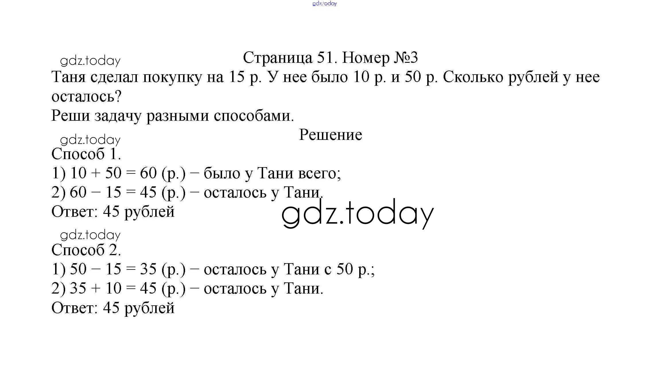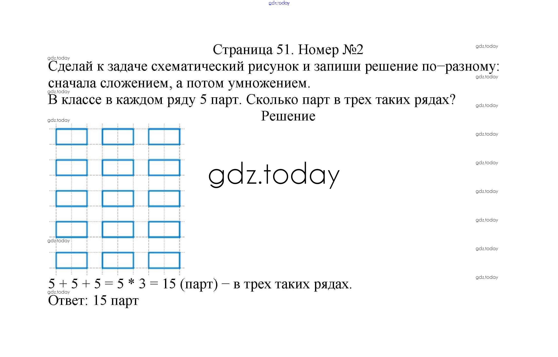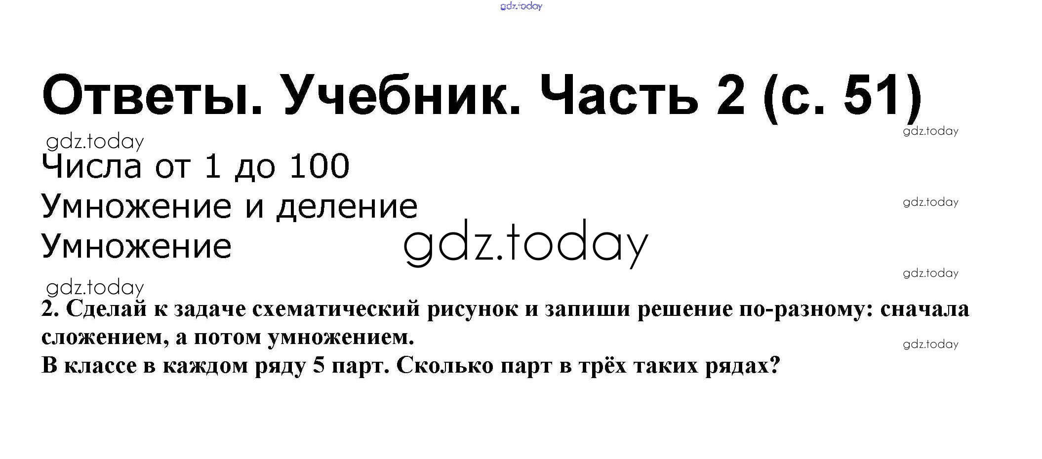 На страницах сайта gdz.today вы найдете учебный и вспомогательный материал, направленный на улучшения знаний школьной программы. ГДЗ - онлайн мир знаний Решение к части 2. Страницы 51 Учебнику по Математике для 2 класса Моро, Бантова Просвещение Школа России 2015