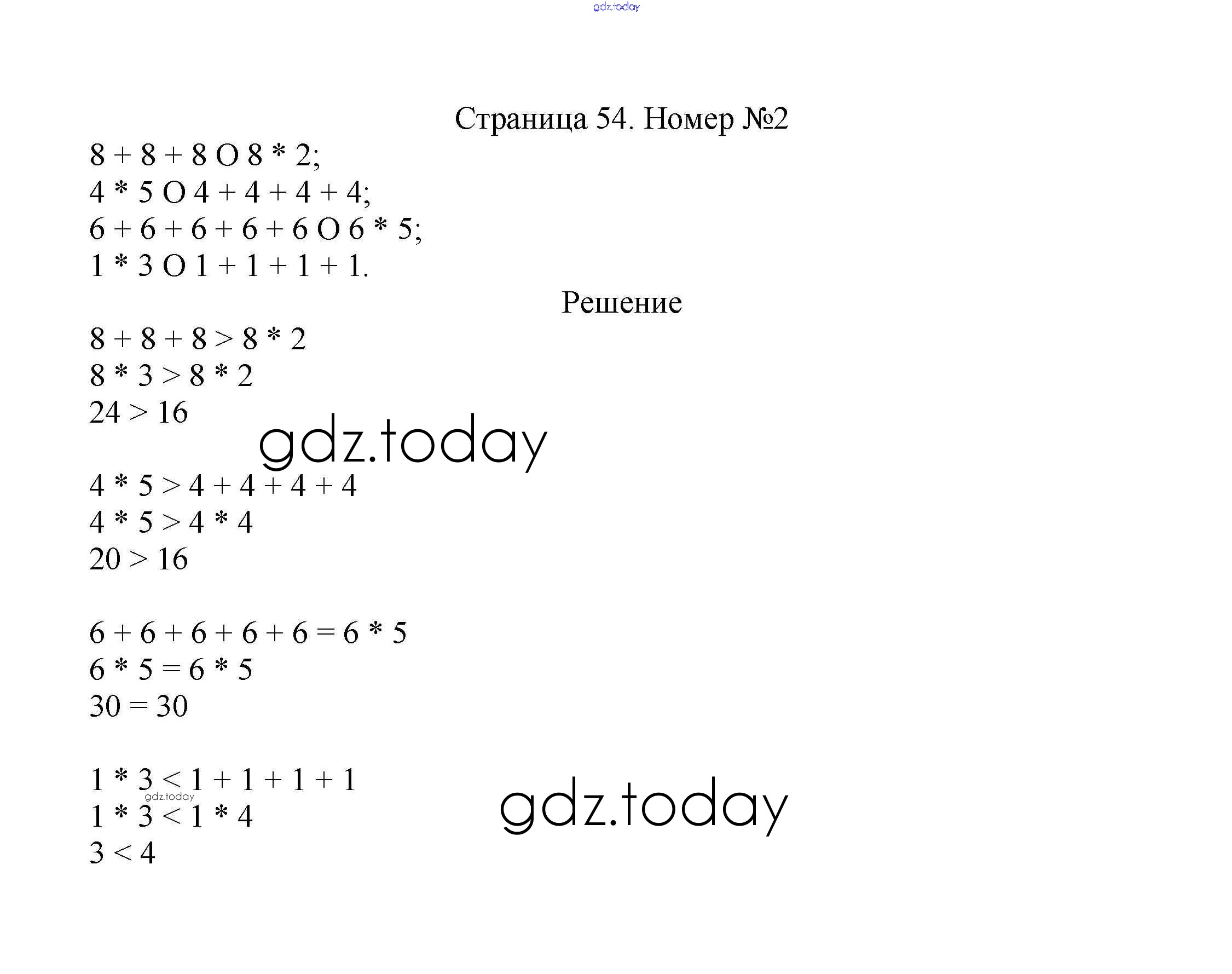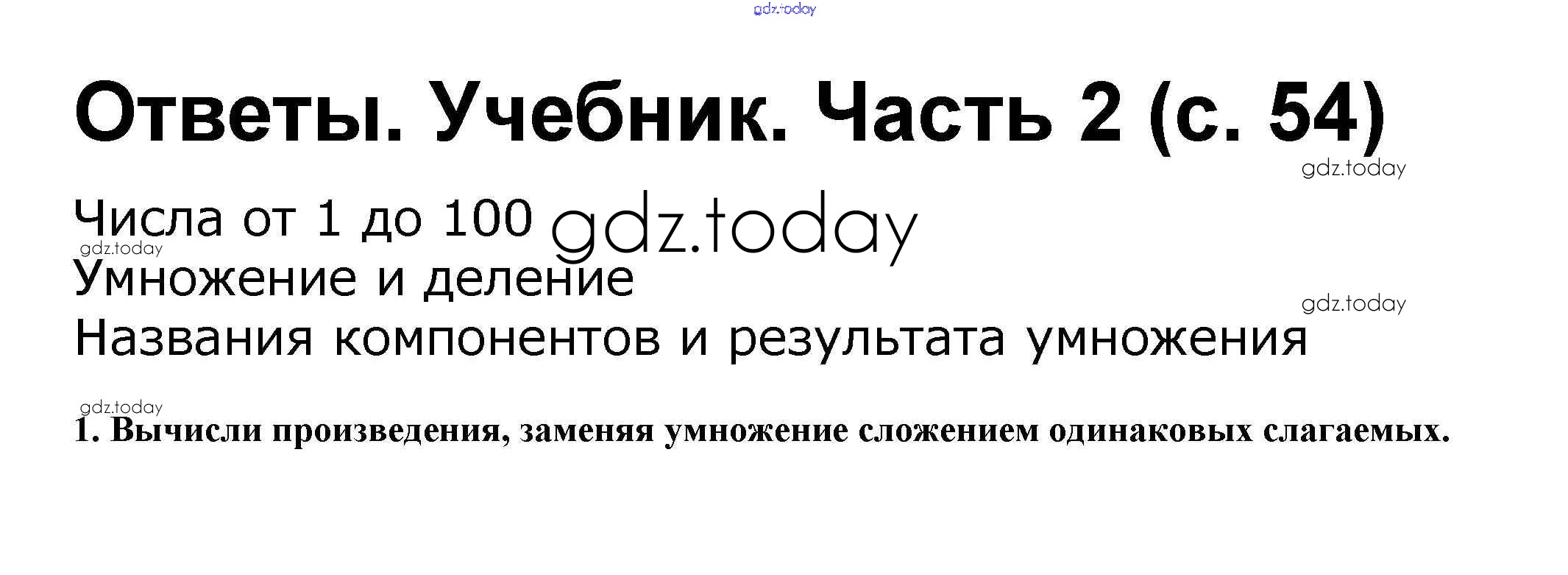 На страницах сайта gdz.today вы найдете учебный и вспомогательный материал, направленный на улучшения знаний школьной программы. ГДЗ - онлайн мир знаний Решение к части 2. Страницы 54 Учебнику по Математике для 2 класса Моро, Бантова Просвещение Школа России 2015