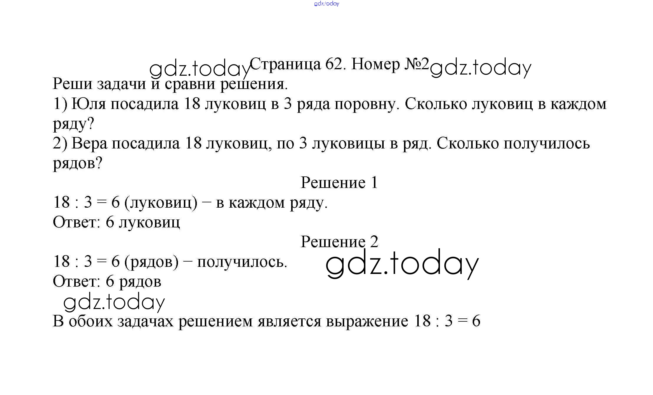 На страницах сайта gdz.today вы найдете учебный и вспомогательный материал, направленный на улучшения знаний школьной программы. ГДЗ - онлайн мир знаний Решение к части 2. Страницы 62 Учебнику по Математике для 2 класса Моро, Бантова Просвещение Школа России 2015