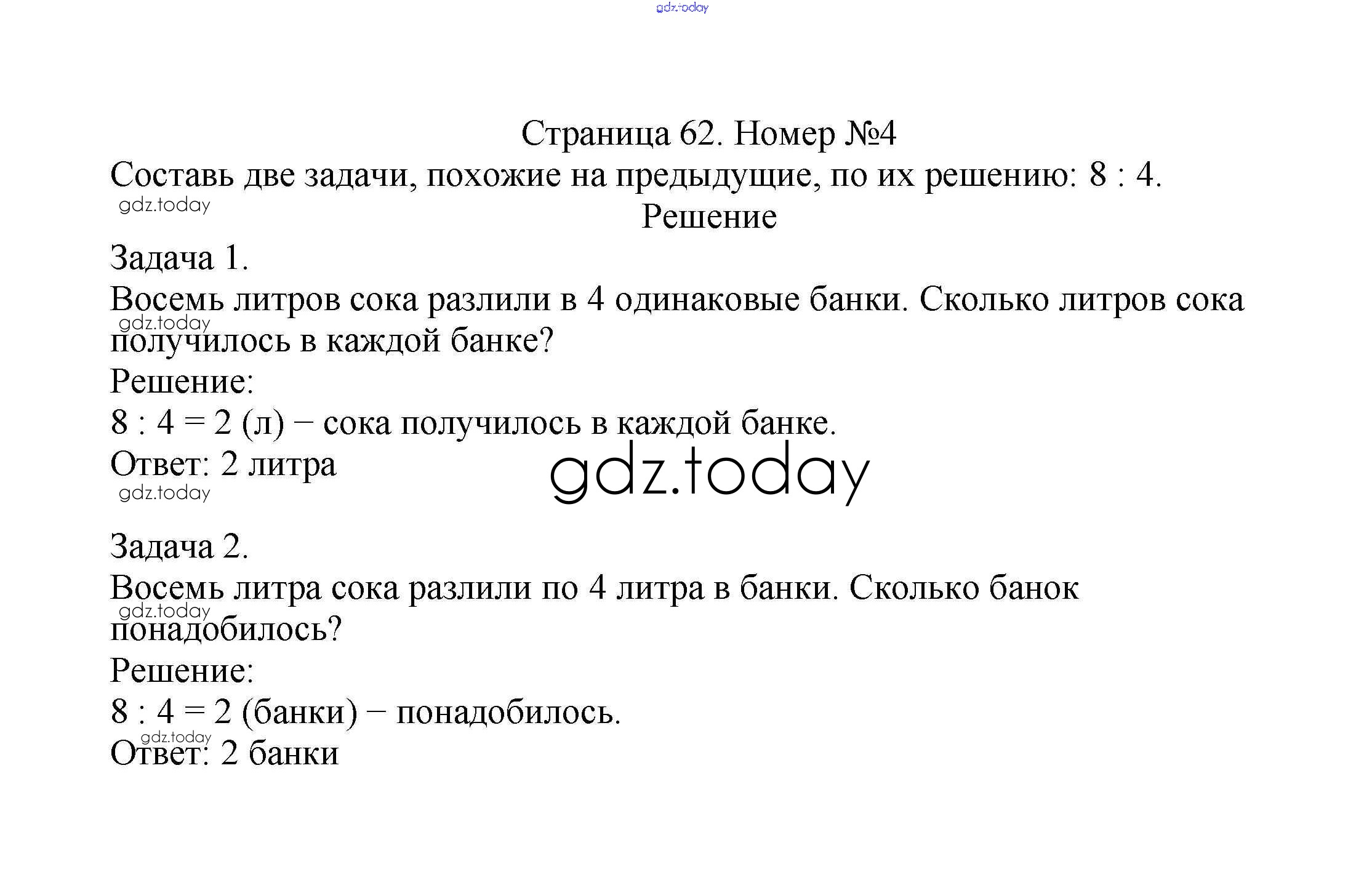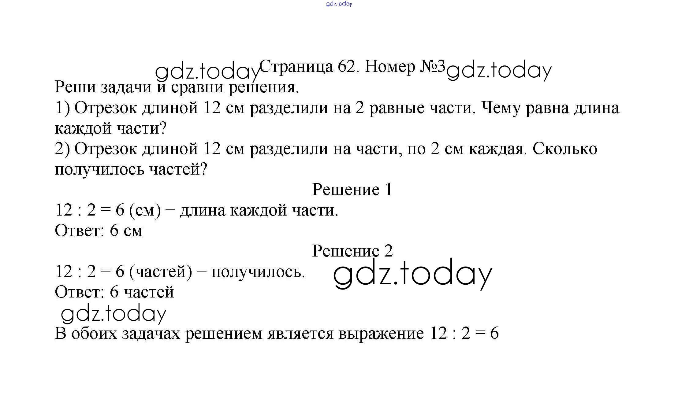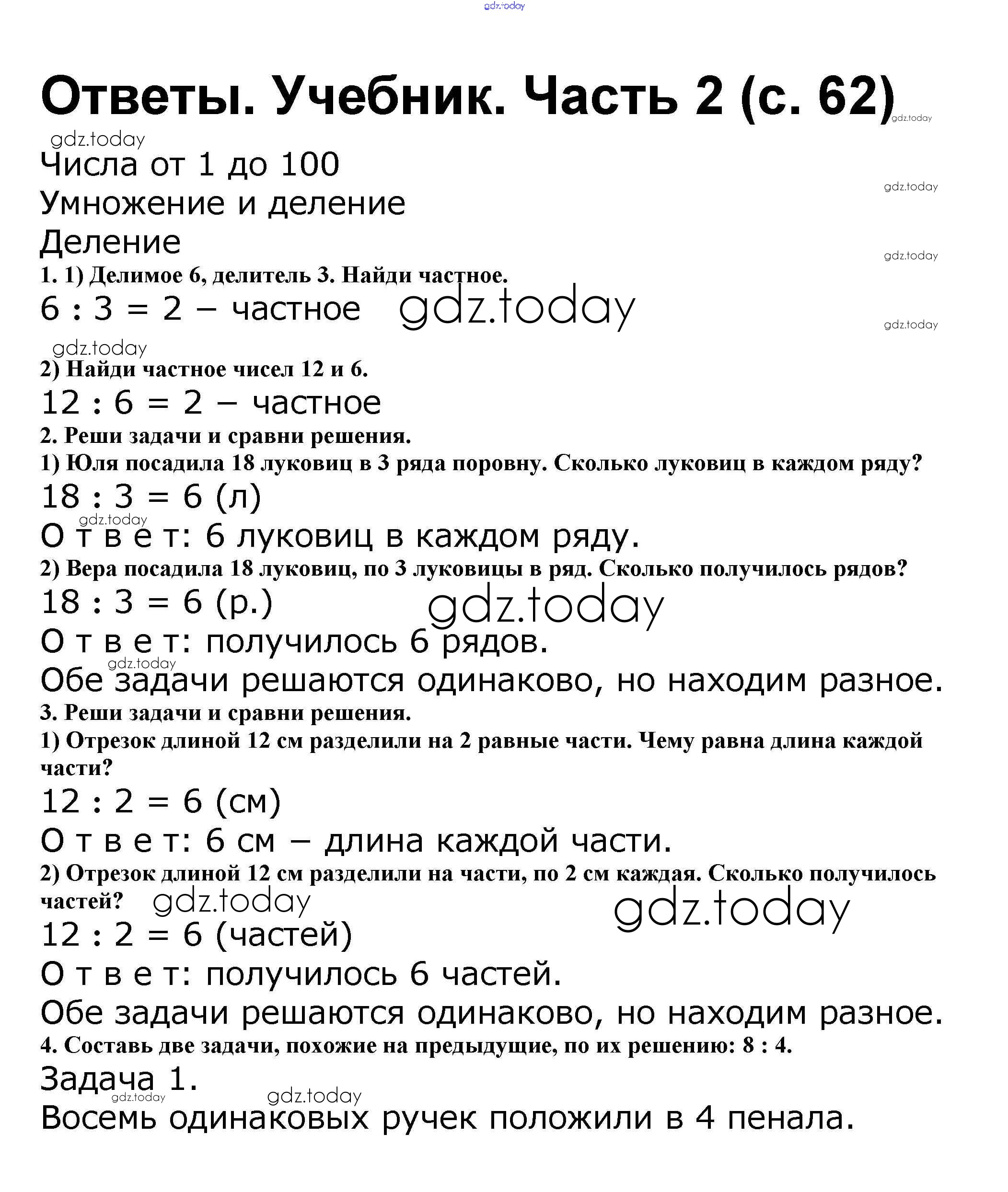 Ответы к Решение к части 2. Страницы 62 Учебнику по Математике для 2 класса Моро, Бантова Просвещение Школа России 2015