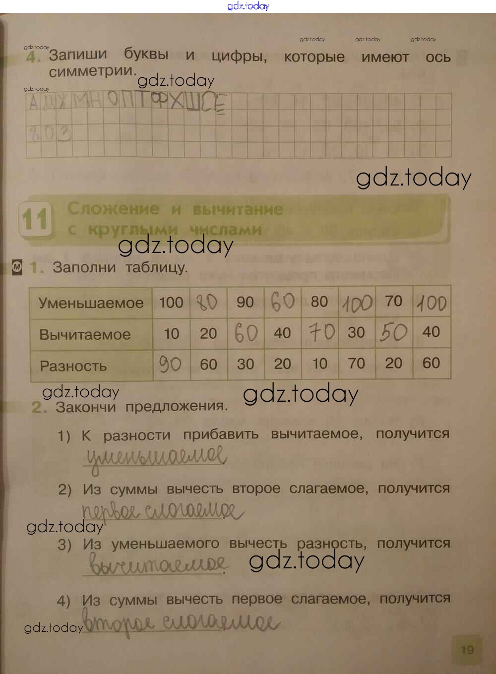 На страницах сайта gdz.today вы найдете учебный и вспомогательный материал, направленный на улучшения знаний школьной программы. ГДЗ - онлайн мир знаний Решение к части 1. Страницы 19 Рабочей тетради по Математике для 2 класса Муравина Дрофа 2016