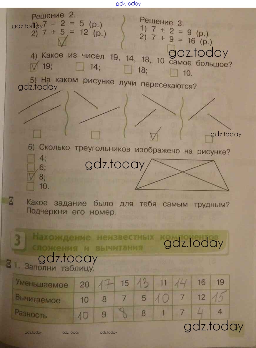 Ответы к Решение к части 1. Страницы 7 Рабочей тетради по Математике для 2 класса Муравина Дрофа 2016