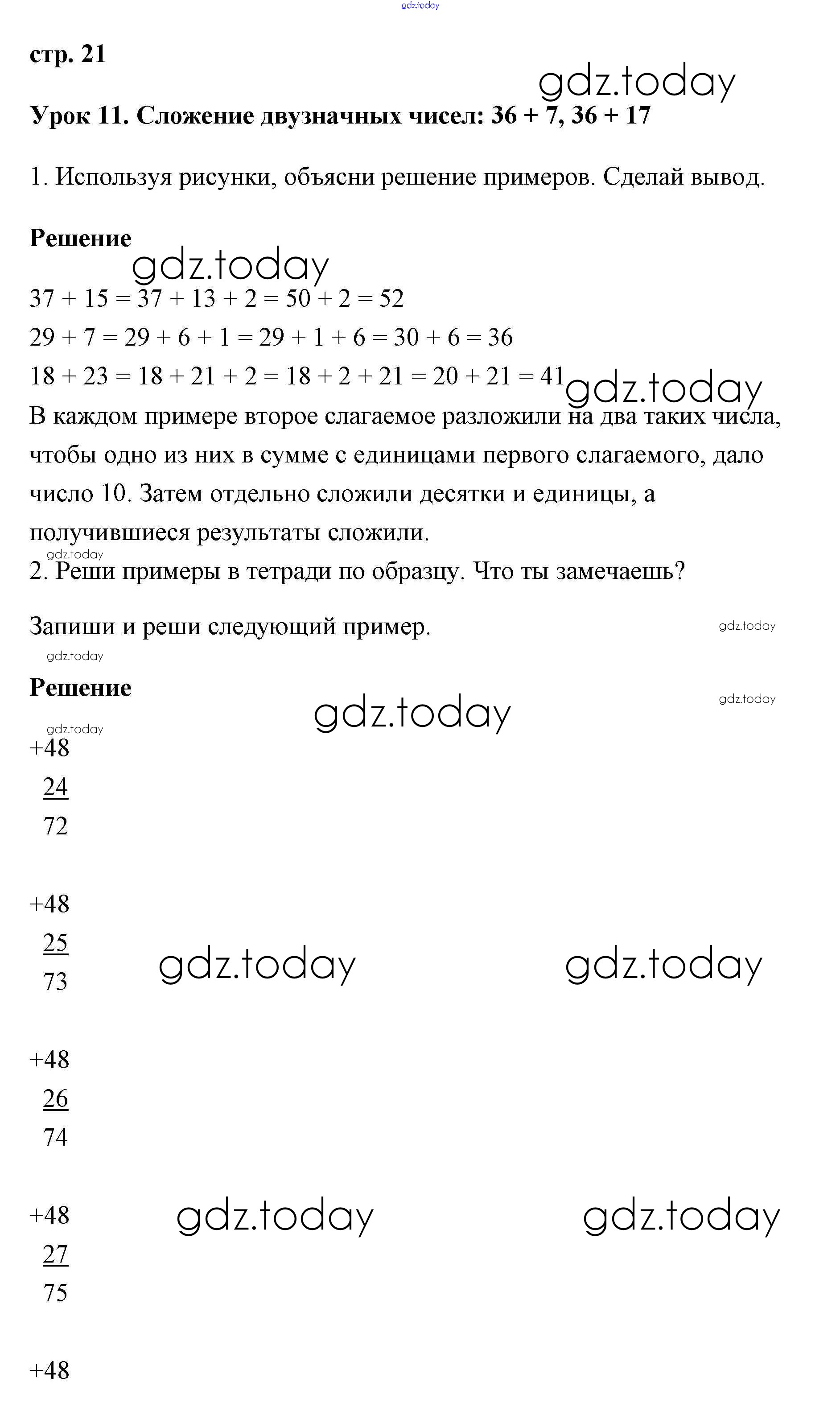 На страницах сайта gdz.today вы найдете учебный и вспомогательный материал, направленный на улучшения знаний школьной программы. ГДЗ - онлайн мир знаний Решение к части 1 21 Учебнику по Математике для 2 класса Петерсон Ювента Перспектива 2016