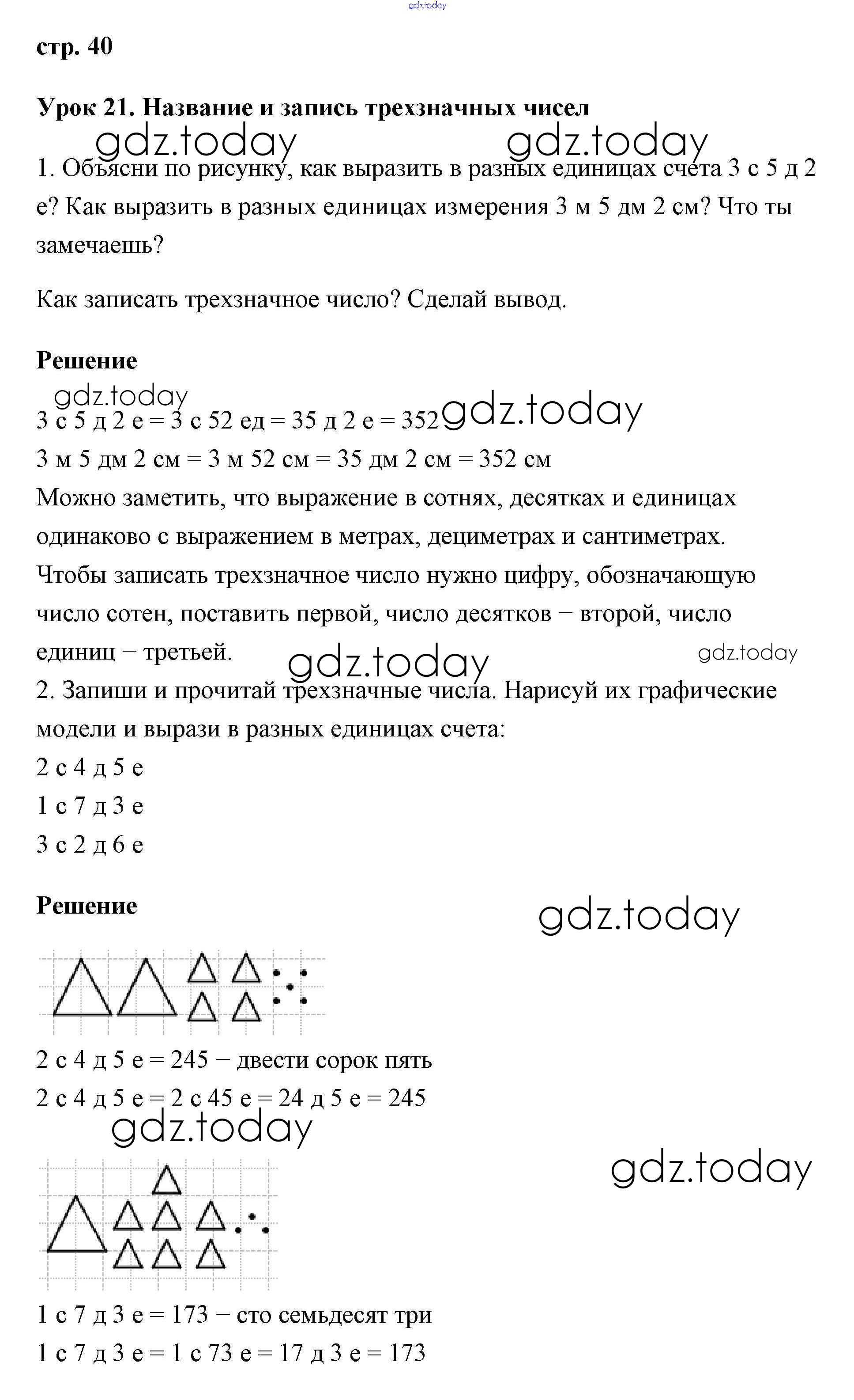 На страницах сайта gdz.today вы найдете учебный и вспомогательный материал, направленный на улучшения знаний школьной программы. ГДЗ - онлайн мир знаний Решение к части 1 40 Учебнику по Математике для 2 класса Петерсон Ювента Перспектива 2016