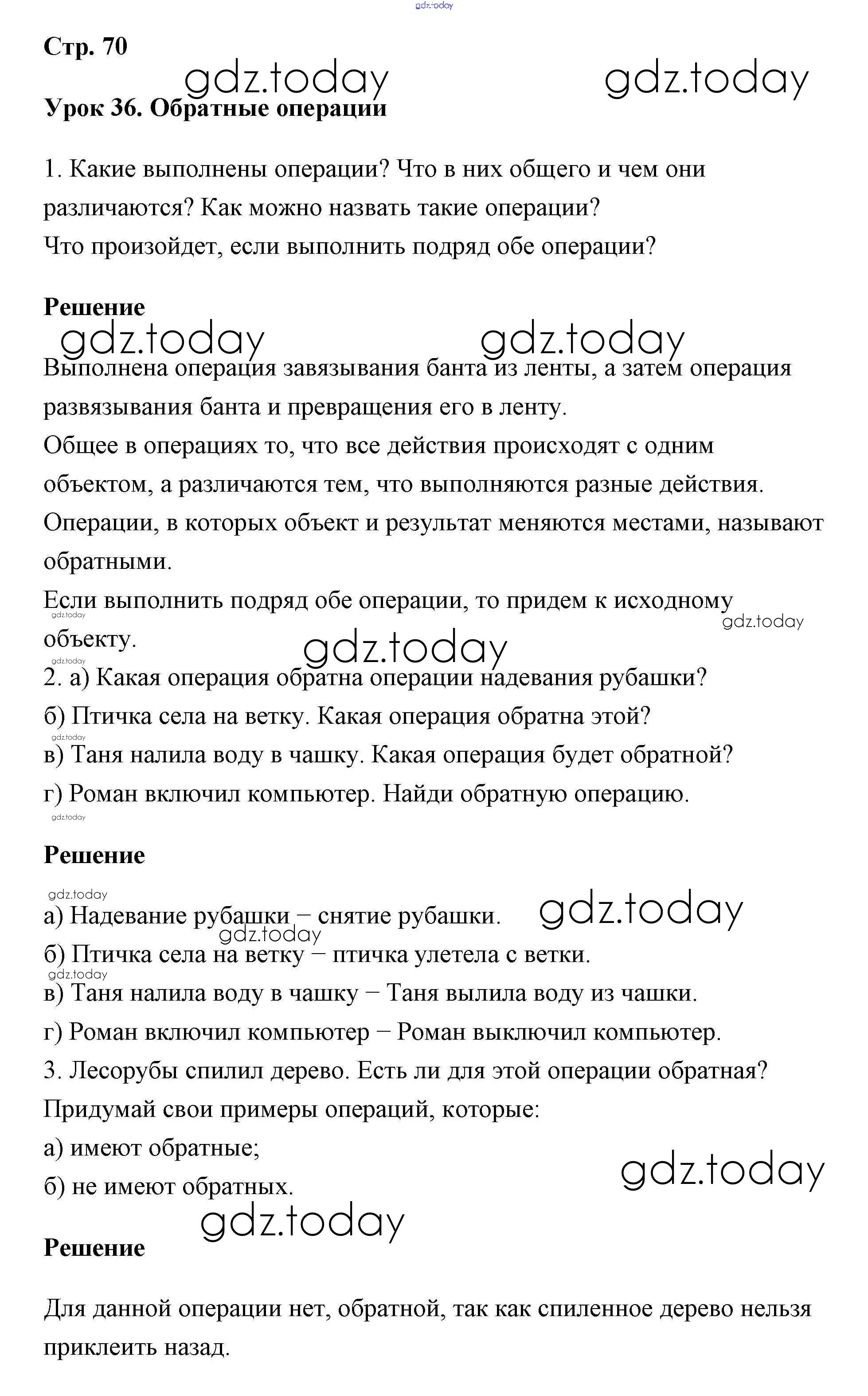 На страницах сайта gdz.today вы найдете учебный и вспомогательный материал, направленный на улучшения знаний школьной программы. ГДЗ - онлайн мир знаний Решение к части 1 70 Учебнику по Математике для 2 класса Петерсон Ювента Перспектива 2016
