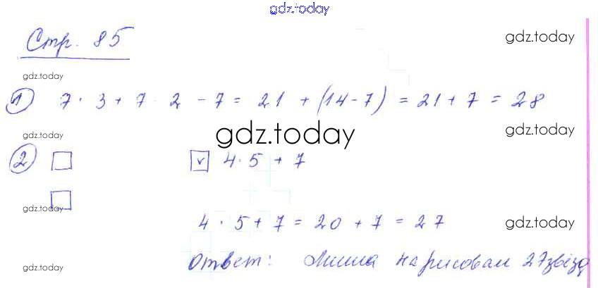 На страницах сайта gdz.today вы найдете учебный и вспомогательный материал, направленный на улучшения знаний школьной программы. ГДЗ - онлайн мир знаний Решение к части 1 (страницы) 85 Контрольным и проверочным работам по Математике для 2 класса Чуракова Академкнига Перспективная начальная школа 2017