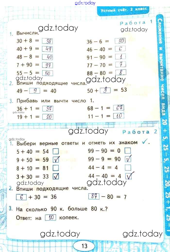 На страницах сайта gdz.today вы найдете учебный и вспомогательный материал, направленный на улучшения знаний школьной программы. ГДЗ - онлайн мир знаний Страницы (решение) 13 Рабочей тетради по Математике для 2 класса Рудницкая Экзамен УМК 2020