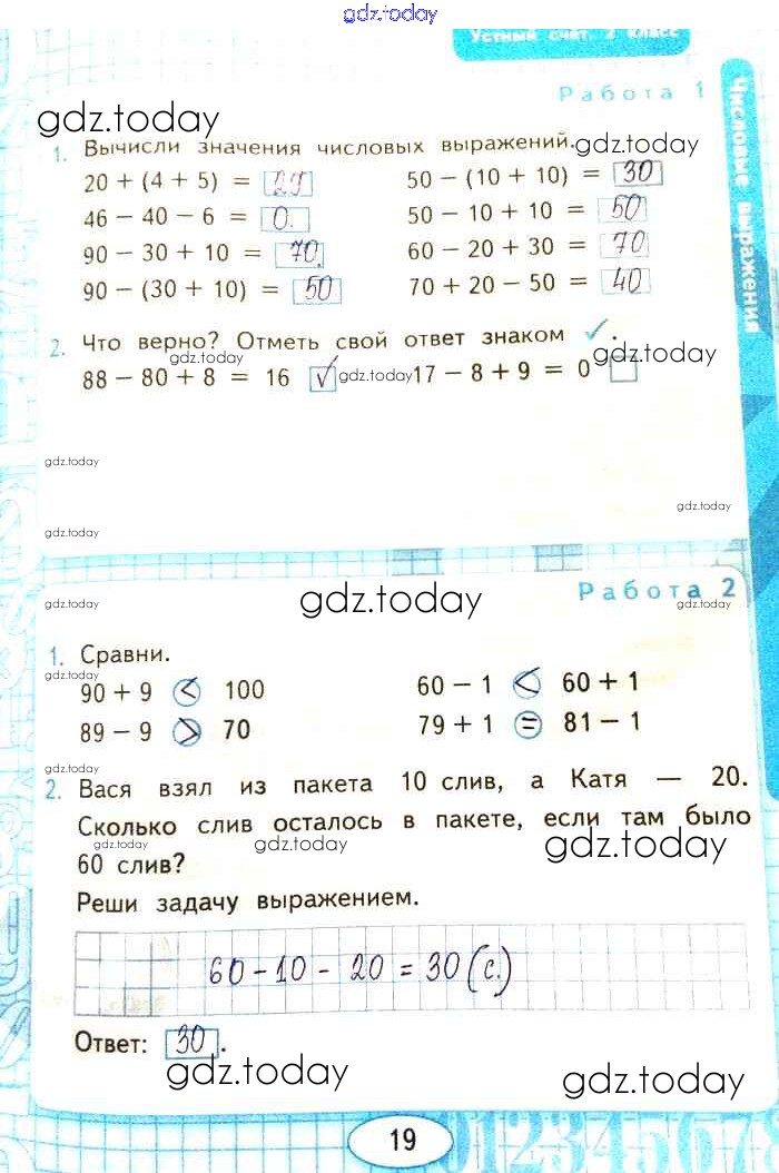 На страницах сайта gdz.today вы найдете учебный и вспомогательный материал, направленный на улучшения знаний школьной программы. ГДЗ - онлайн мир знаний Страницы (решение) 19 Рабочей тетради по Математике для 2 класса Рудницкая Экзамен УМК 2020