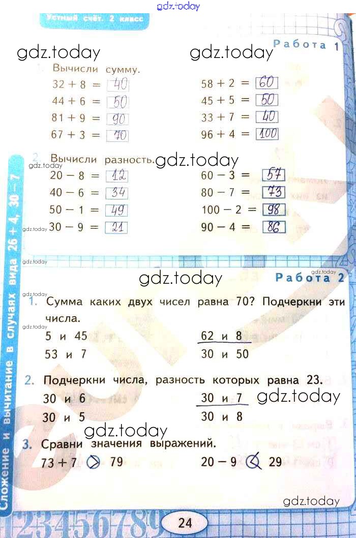 На страницах сайта gdz.today вы найдете учебный и вспомогательный материал, направленный на улучшения знаний школьной программы. ГДЗ - онлайн мир знаний Страницы (решение) 24 Рабочей тетради по Математике для 2 класса Рудницкая Экзамен УМК 2020
