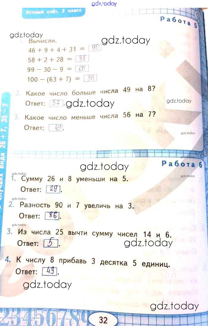 На страницах сайта gdz.today вы найдете учебный и вспомогательный материал, направленный на улучшения знаний школьной программы. ГДЗ - онлайн мир знаний Страницы (решение) 32 Рабочей тетради по Математике для 2 класса Рудницкая Экзамен УМК 2020