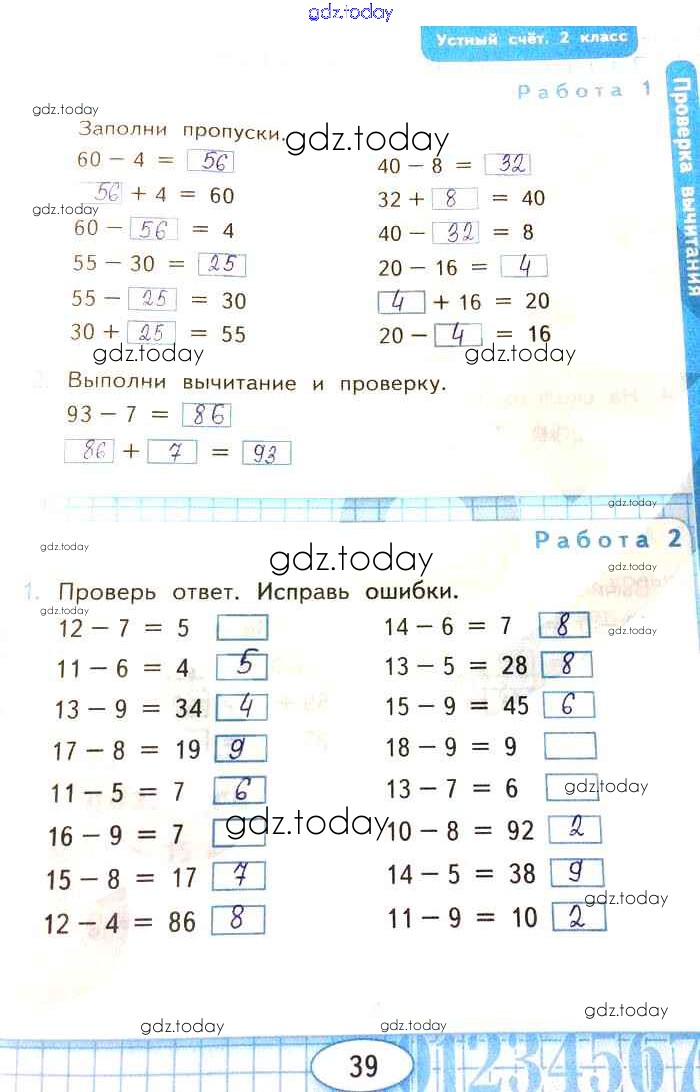 На страницах сайта gdz.today вы найдете учебный и вспомогательный материал, направленный на улучшения знаний школьной программы. ГДЗ - онлайн мир знаний Страницы (решение) 39 Рабочей тетради по Математике для 2 класса Рудницкая Экзамен УМК 2020