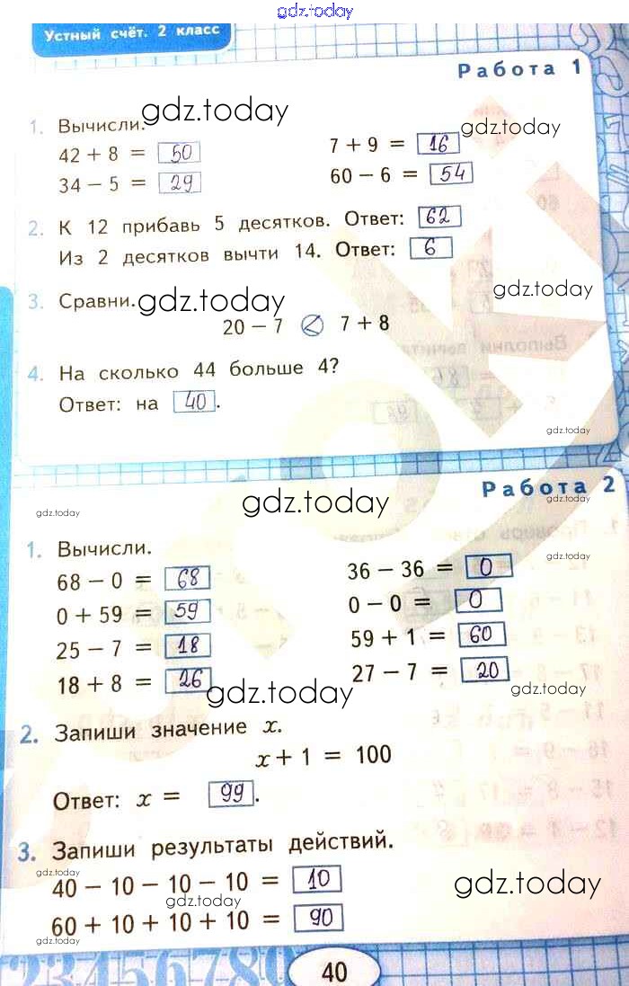 На страницах сайта gdz.today вы найдете учебный и вспомогательный материал, направленный на улучшения знаний школьной программы. ГДЗ - онлайн мир знаний Страницы (решение) 40 Рабочей тетради по Математике для 2 класса Рудницкая Экзамен УМК 2020