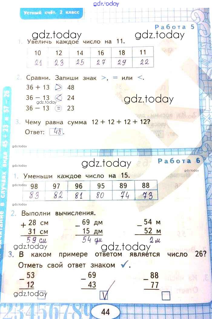 На страницах сайта gdz.today вы найдете учебный и вспомогательный материал, направленный на улучшения знаний школьной программы. ГДЗ - онлайн мир знаний Страницы (решение) 44 Рабочей тетради по Математике для 2 класса Рудницкая Экзамен УМК 2020