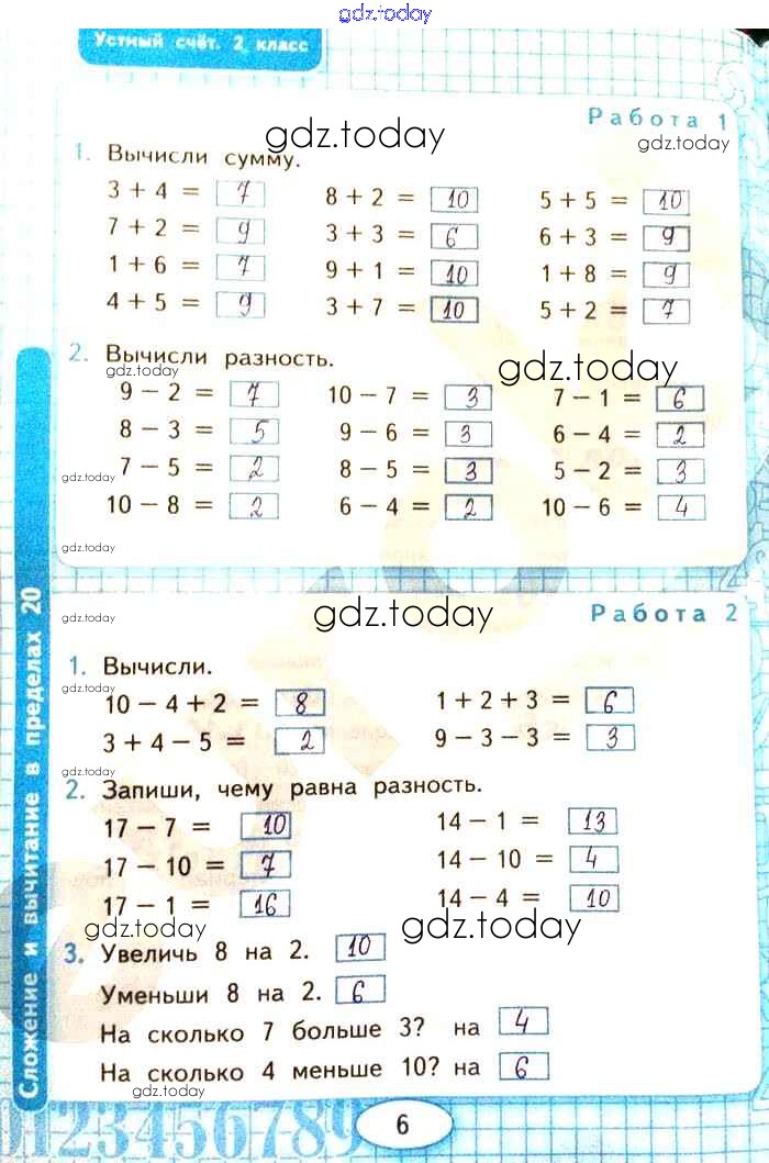 На страницах сайта gdz.today вы найдете учебный и вспомогательный материал, направленный на улучшения знаний школьной программы. ГДЗ - онлайн мир знаний Страницы (решение) 6 Рабочей тетради по Математике для 2 класса Рудницкая Экзамен УМК 2020
