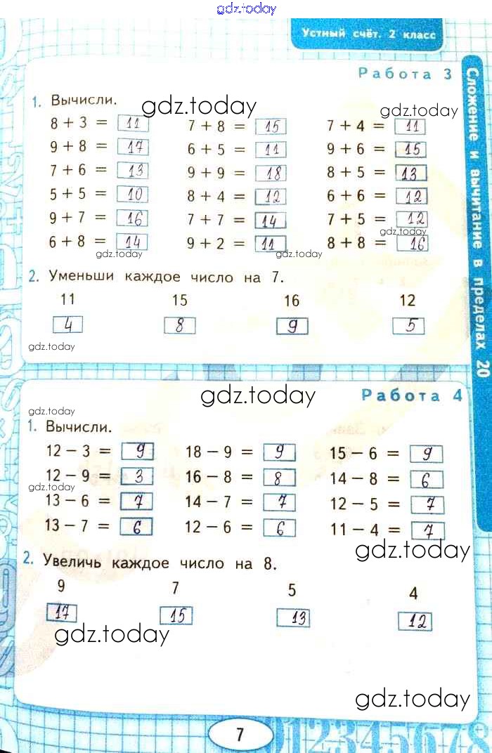 На страницах сайта gdz.today вы найдете учебный и вспомогательный материал, направленный на улучшения знаний школьной программы. ГДЗ - онлайн мир знаний Страницы (решение) 7 Рабочей тетради по Математике для 2 класса Рудницкая Экзамен УМК 2020