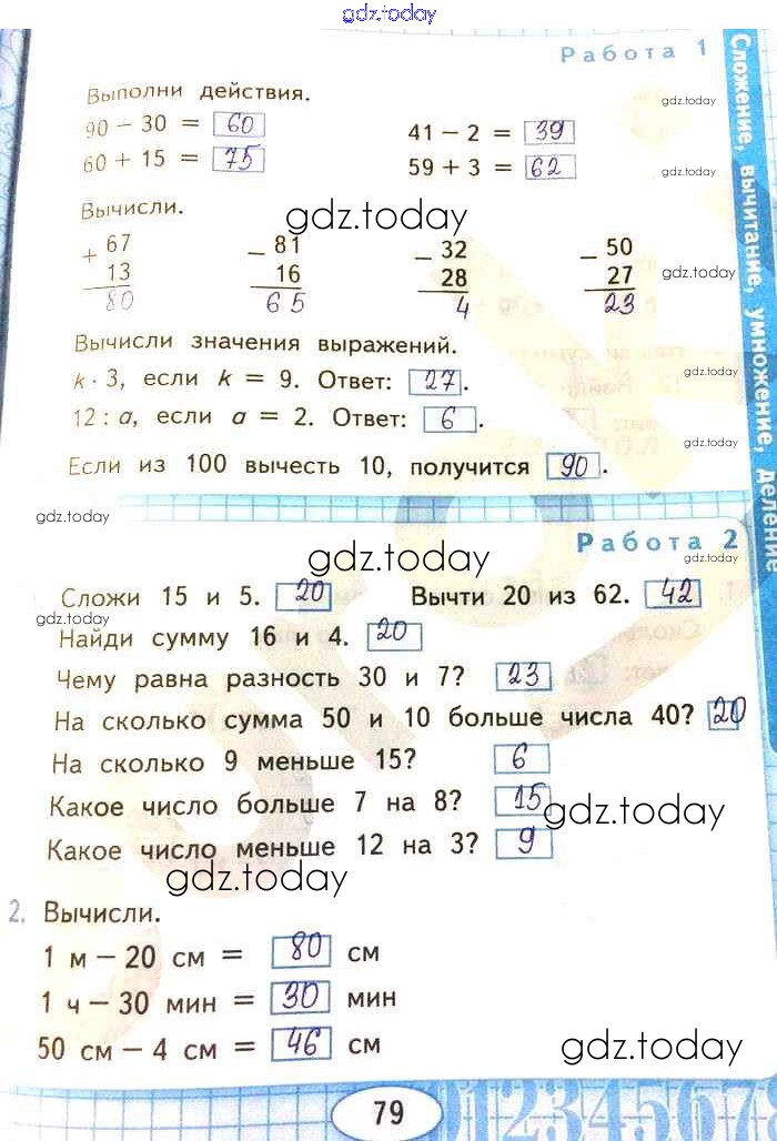 На страницах сайта gdz.today вы найдете учебный и вспомогательный материал, направленный на улучшения знаний школьной программы. ГДЗ - онлайн мир знаний Страницы (решение) 79 Рабочей тетради по Математике для 2 класса Рудницкая Экзамен УМК 2020