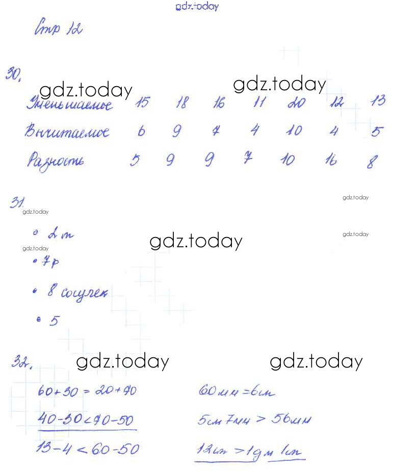 На страницах сайта gdz.today вы найдете учебный и вспомогательный материал, направленный на улучшения знаний школьной программы. ГДЗ - онлайн мир знаний Страницы (решение) 12 Рабочей тетради по Математике для 2 класса Кремнева Экзамен УМК 2018