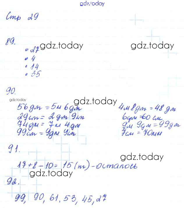 На страницах сайта gdz.today вы найдете учебный и вспомогательный материал, направленный на улучшения знаний школьной программы. ГДЗ - онлайн мир знаний Страницы (решение) 29 Рабочей тетради по Математике для 2 класса Кремнева Экзамен УМК 2018