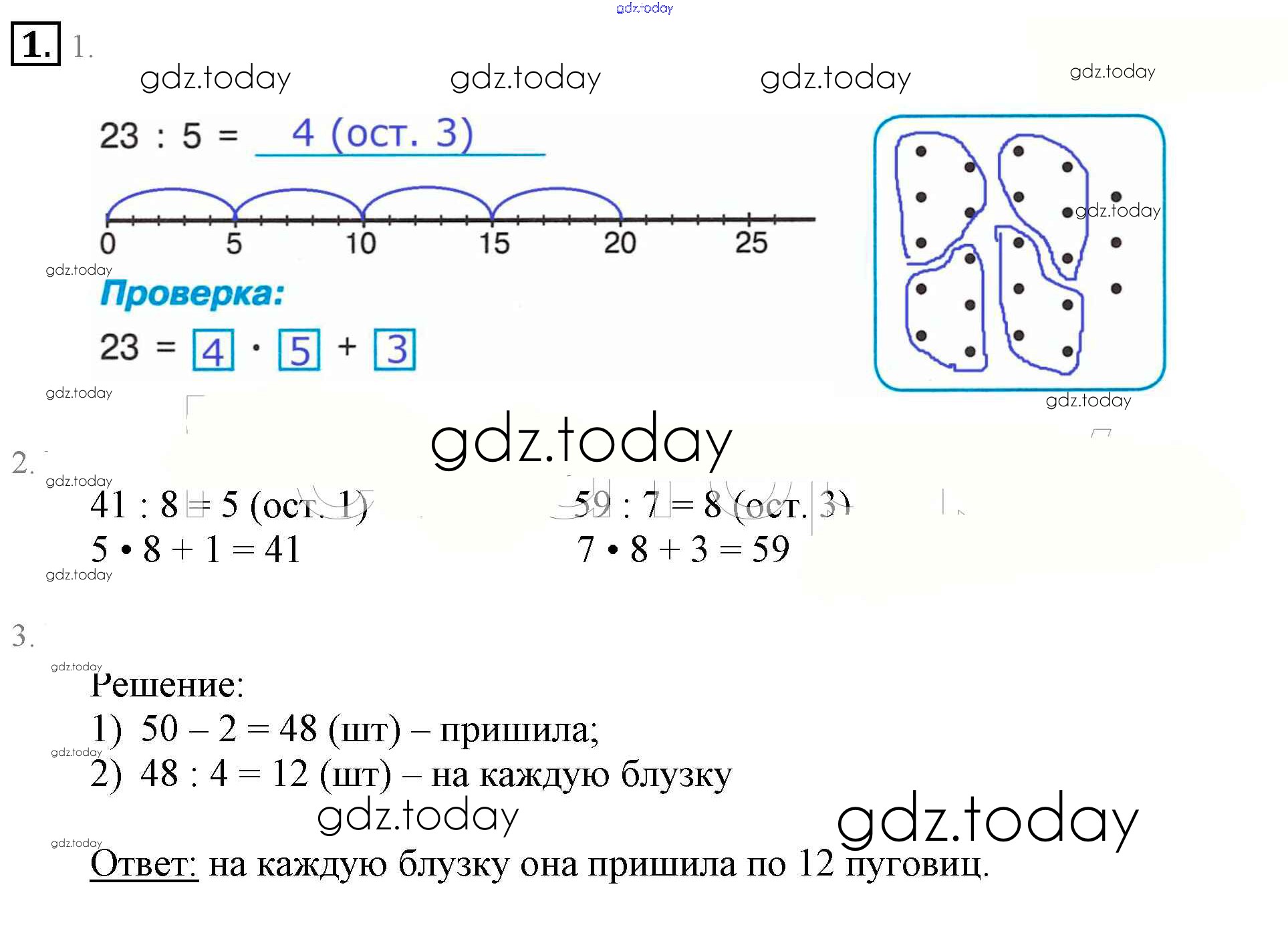 На страницах сайта gdz.today вы найдете учебный и вспомогательный материал, направленный на улучшения знаний школьной программы. ГДЗ - онлайн мир знаний Урок 31. Деление с остатком Решение к части 3 1 Рабочей тетради по Математике для 2 класса Петерсон Ювента Учусь учиться 2016