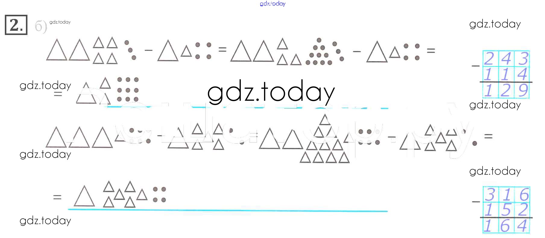 Ответы к Урок 31. Вычитание трехзначных чисел 243 – 114 316 – 152 Решение к части 1 2 Рабочей тетради по Математике для 2 класса Петерсон Ювента Учусь учиться 2016