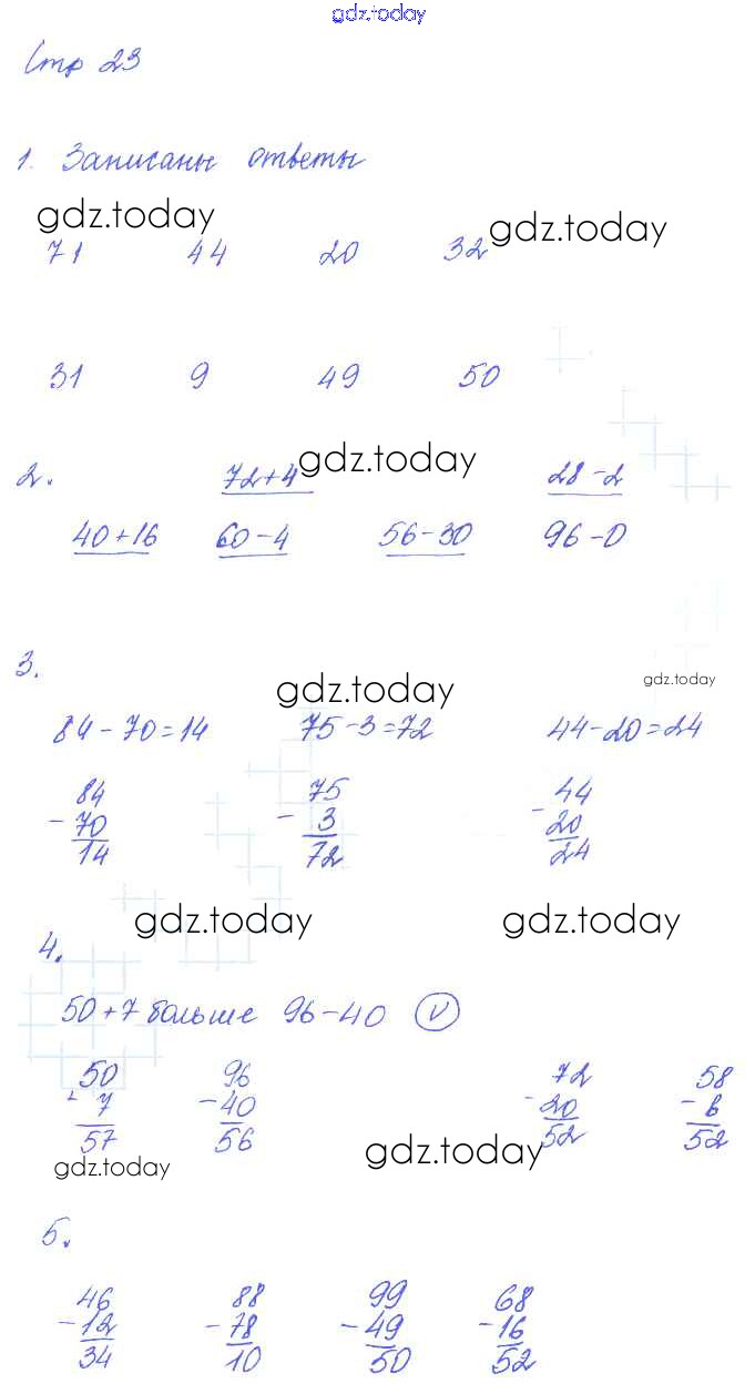 На страницах сайта gdz.today вы найдете учебный и вспомогательный материал, направленный на улучшения знаний школьной программы. ГДЗ - онлайн мир знаний Решение к части 1. Страницы 23 Рабочей тетради по Математике для 2 класса Рудницкая, Юдачева Вентана-граф Начальная школа XXI века 2014