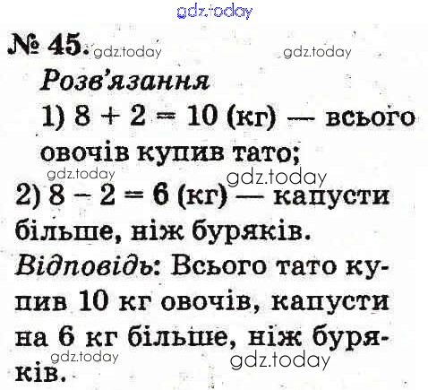 Ответы к Рішення до Повторення вивченого в 1 класі 45 Учебнику по Математике для 2 класса Богданович, Лишенко Генеза 2012