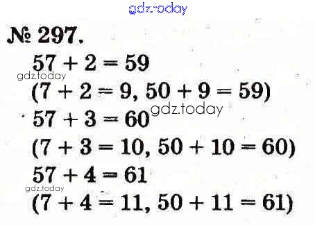 На страницах сайта gdz.today вы найдете учебный и вспомогательный материал, направленный на улучшения знаний школьной программы. ГДЗ - онлайн мир знаний Рішення до Усне додавання і віднімання двоцифрових чисел з переходом через розряд 297 Учебнику по Математике для 2 класса Богданович, Лишенко Генеза 2012