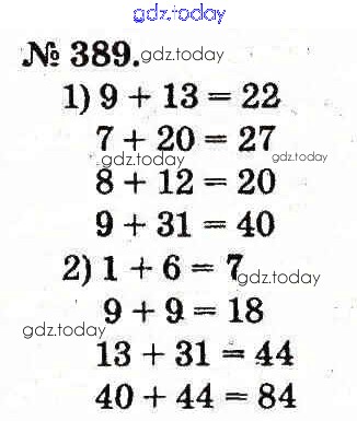 На страницах сайта gdz.today вы найдете учебный и вспомогательный материал, направленный на улучшения знаний школьной программы. ГДЗ - онлайн мир знаний Рішення до Усне додавання і віднімання двоцифрових чисел з переходом через розряд 389 Учебнику по Математике для 2 класса Богданович, Лишенко Генеза 2012