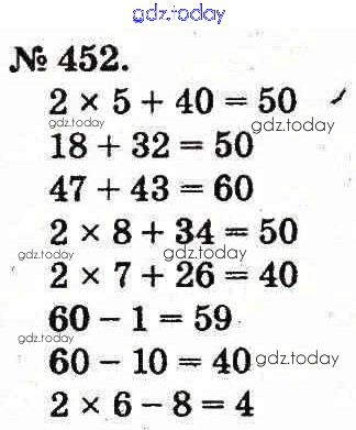 На страницах сайта gdz.today вы найдете учебный и вспомогательный материал, направленный на улучшения знаний школьной программы. ГДЗ - онлайн мир знаний Рішення до Арифметичні дії множення та ділення 452 Учебнику по Математике для 2 класса Богданович, Лишенко Генеза 2012